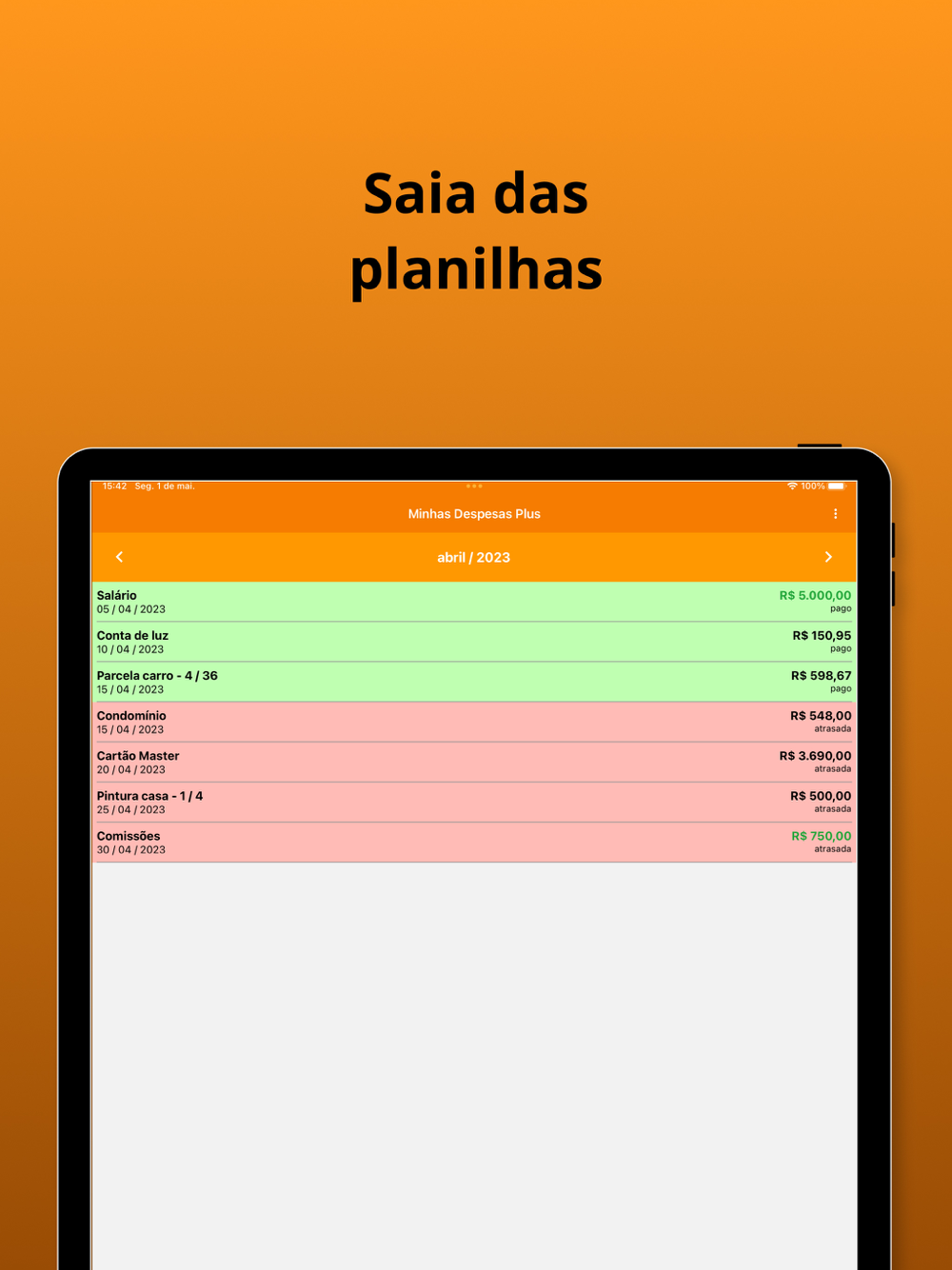 My Expenses Plus is a simple and practical application to keep your monthly financial control. It is only you to launch your receipts and expenses that happen during the month.