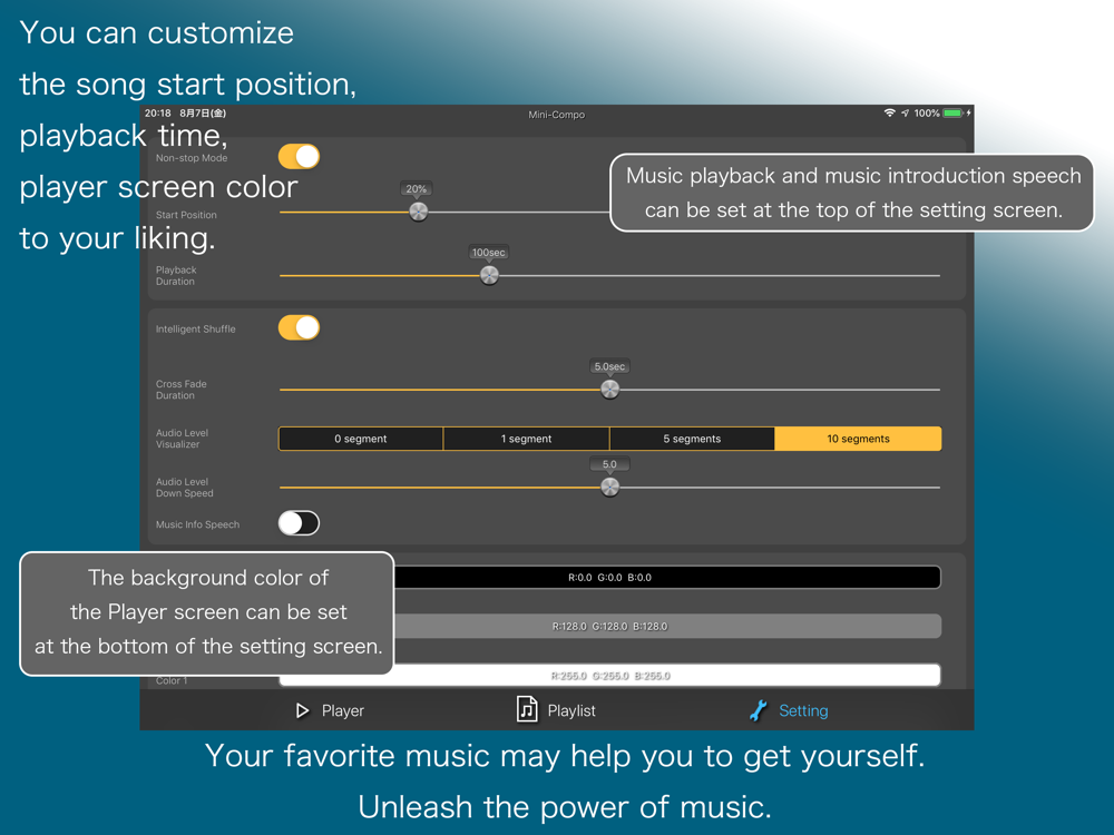 Are you making the best of your music files? Mini-Compo plays the main part of the music one after another like a DJ.
