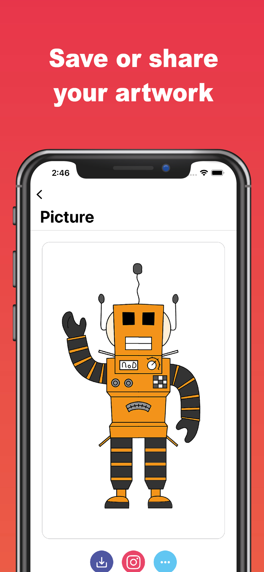 - Quick sharing. Share your drawing with friends on social networks or email in just one tap;