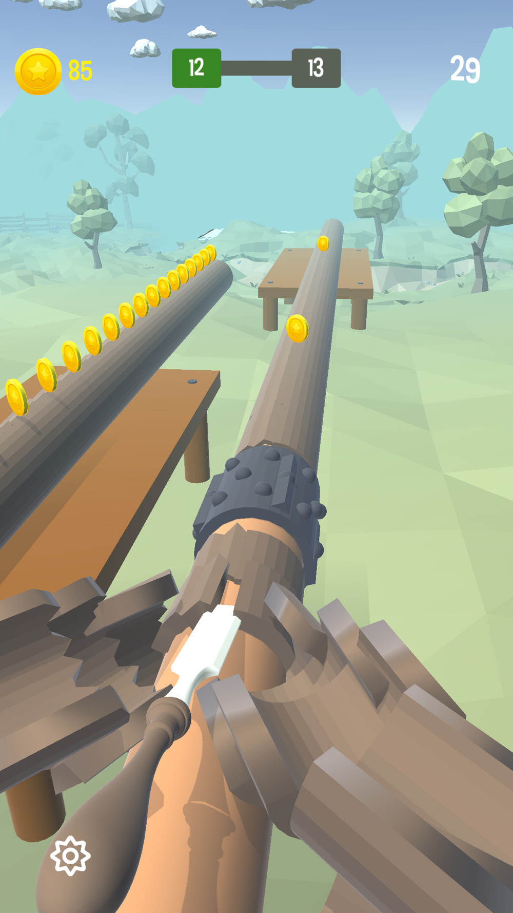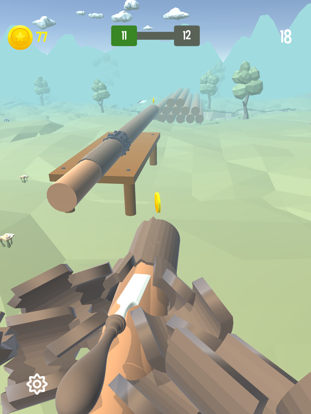 Hold your finger on the screen to peel the wood.