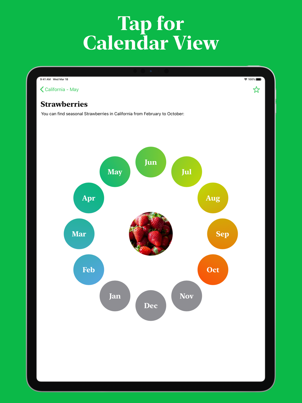 Additionally you can manually view other months and locations, tap on produce to show a calendar view for the produce over the whole year, or bring up a list of all produce in your location to quickly find the produce you are looking for. For those with an Apple Watch there is now a companion app to help you out on the go!