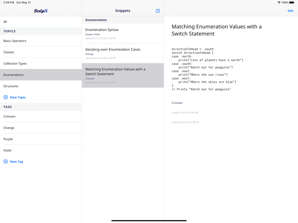 SnipX keeps your code snippets organized and accounted for so you’ll always know exactly how to build your next feature.