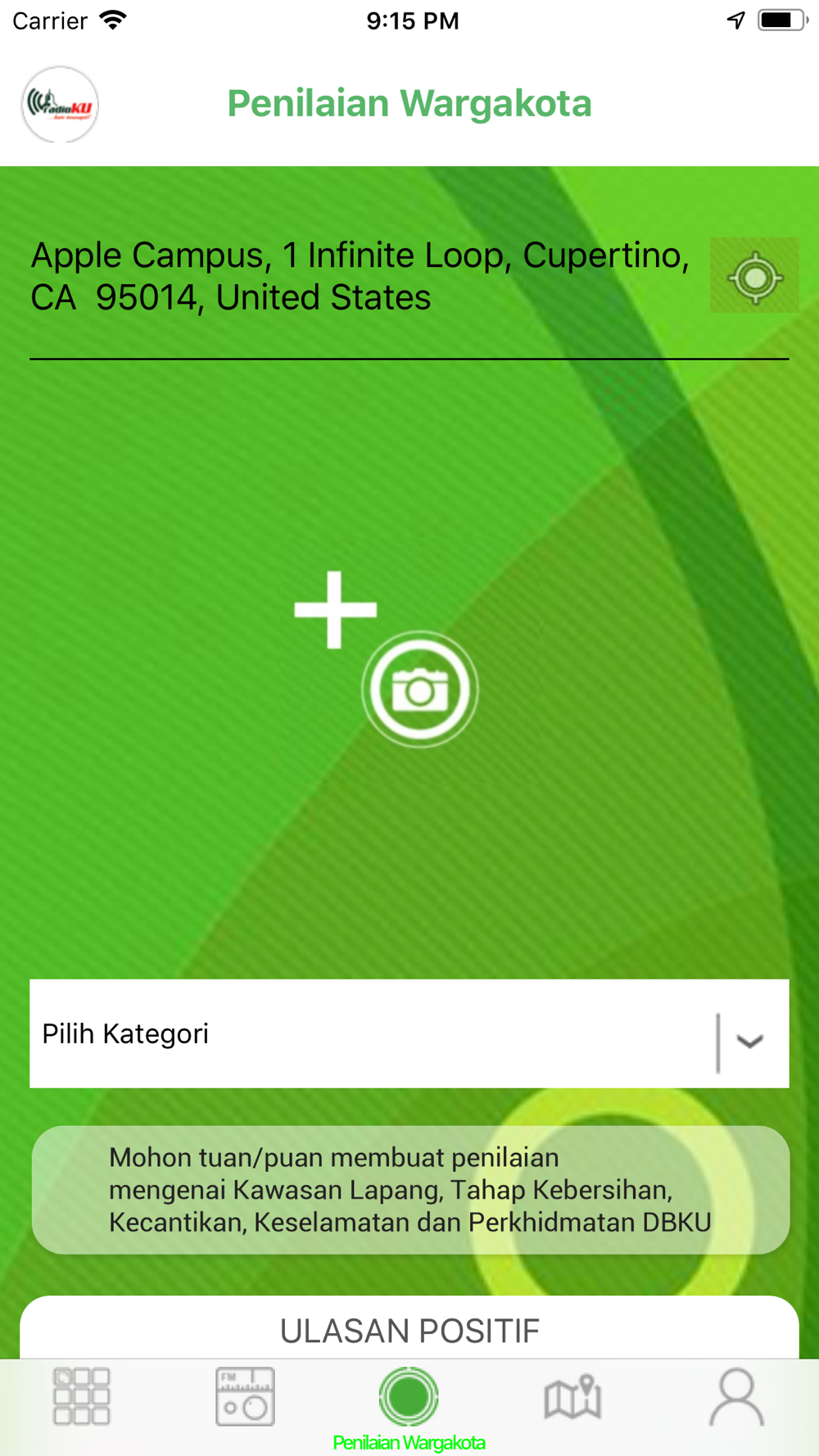 Community based platform especially for Sarawak-Kuching resident RadioKU is smart community-based platform which complement to the the Smart City Initiatives, is a smart community-based ONLINE RADIO apps which provides Kuching resident all the latest news, announcement, event and related information. All information gathered will be from DBKU, KJMDBKU, OKSHE, Bakat Kamek, Startup Borneo,etc. It also allows the user to capture/snap picture for any interesting and cool places at the local places such as restaurant,food premises,business premises, etc which later user can gives out review,rating and comment and shared to all the community as well.