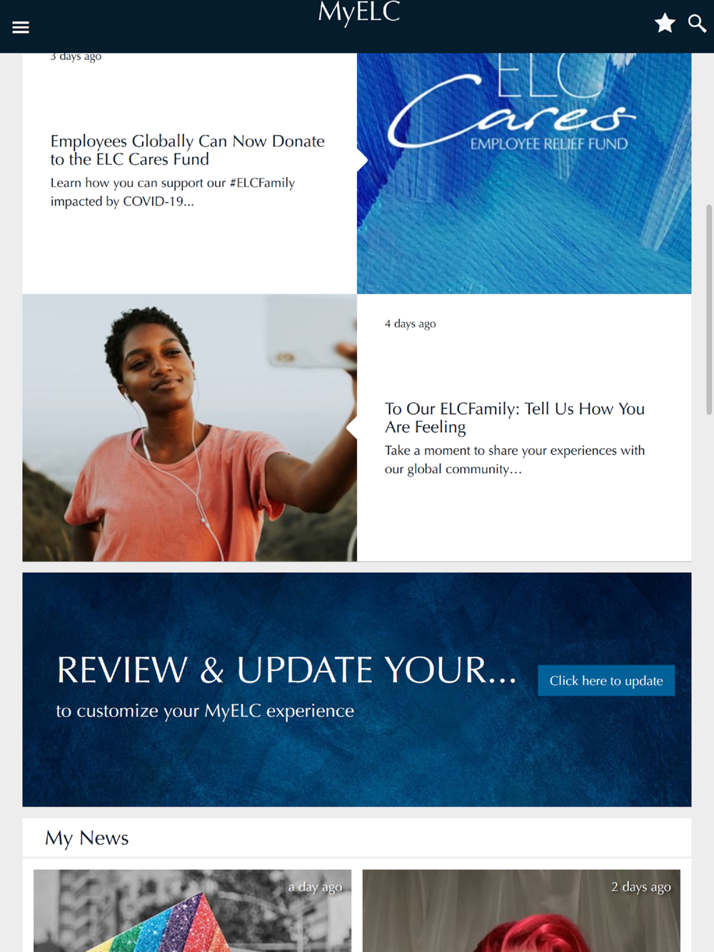 MyELC@ELC Mobile is the best way to stay informed and connected with The Estée Lauder Companies community while on the go.