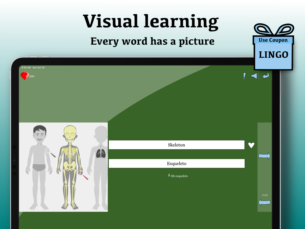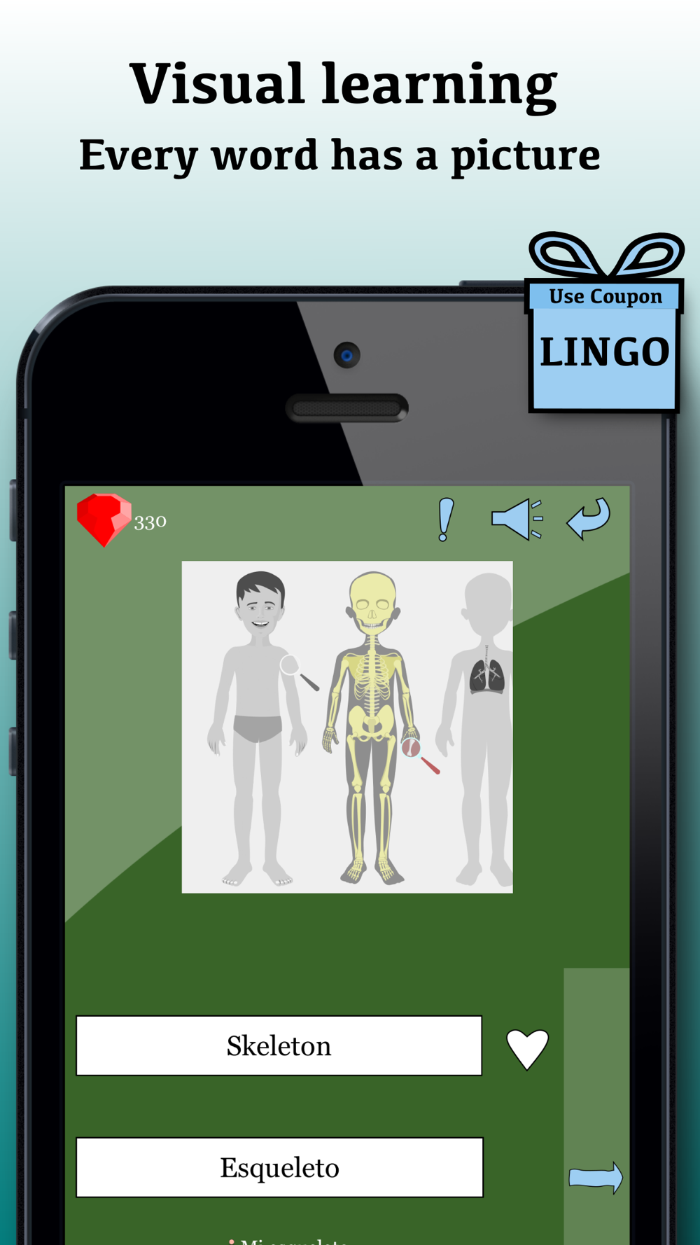 Learn the names of everyday items while learning French, Spanish, English or Turkish with this FREE download. Use the "LINGO" coupon code when you start the app to really get you started.