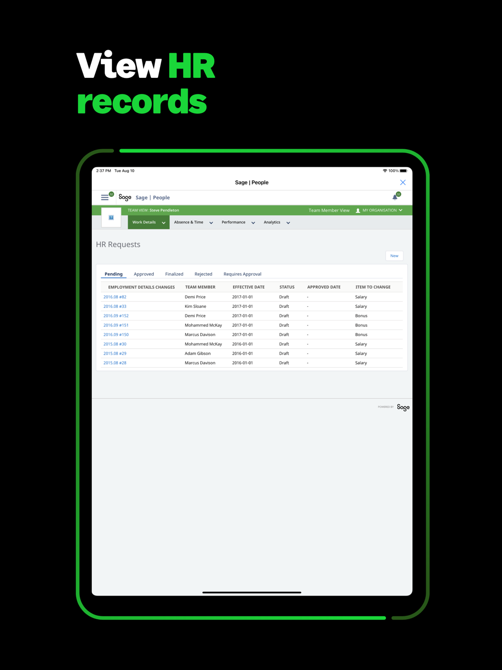 Designed to complement the desktop experience, the new and improved Sage People mobile app helps organizations deliver better and faster mobile experiences to their remote workforce. The Sage People app allows organizations to meet evolving employee expectations for consumer-grade mobile experiences and streamlines HR processes with the ability to work effectively on the go.