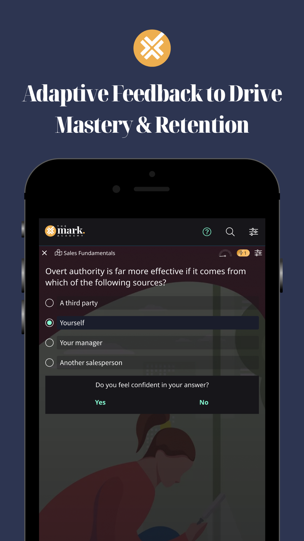 The Mark Academy delivers daily Mastery Moments - short, two-minute training bursts which first raise your learner’s mastery level, and then ensures long term retention.
