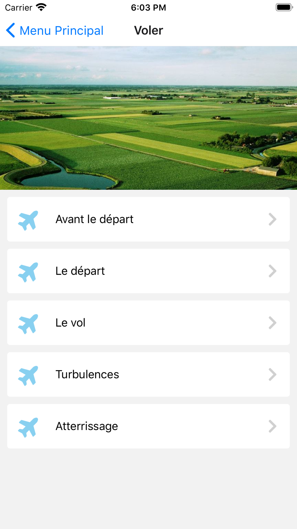 Le vol, les faits objectifs, les exercicesde relaxation, le bouton de la panique et d'autres informations.