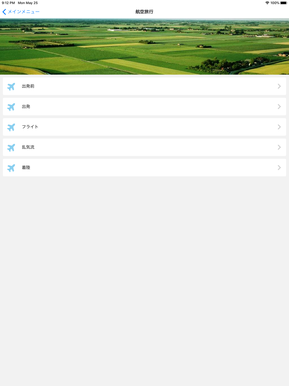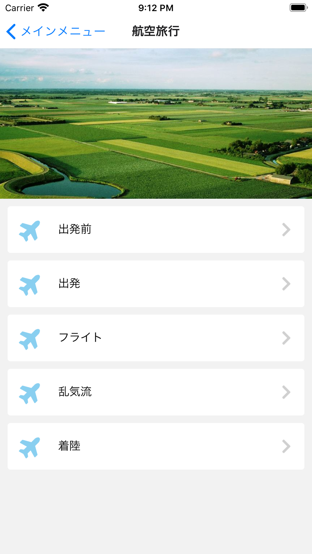 このメニューを通して空を飛ぶとはどういうことか(飛行原理の概説)、また、知っておくべき統計データ、飛行中に不安になるとどんな症状が現れるか、それに対してどうすればいいかなどを知ることができます。