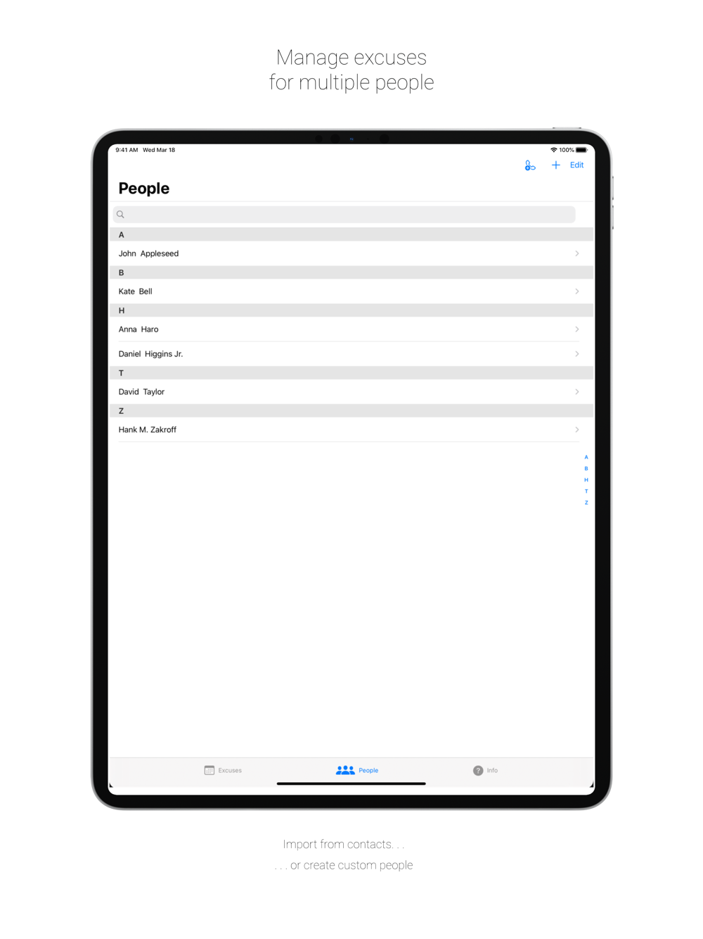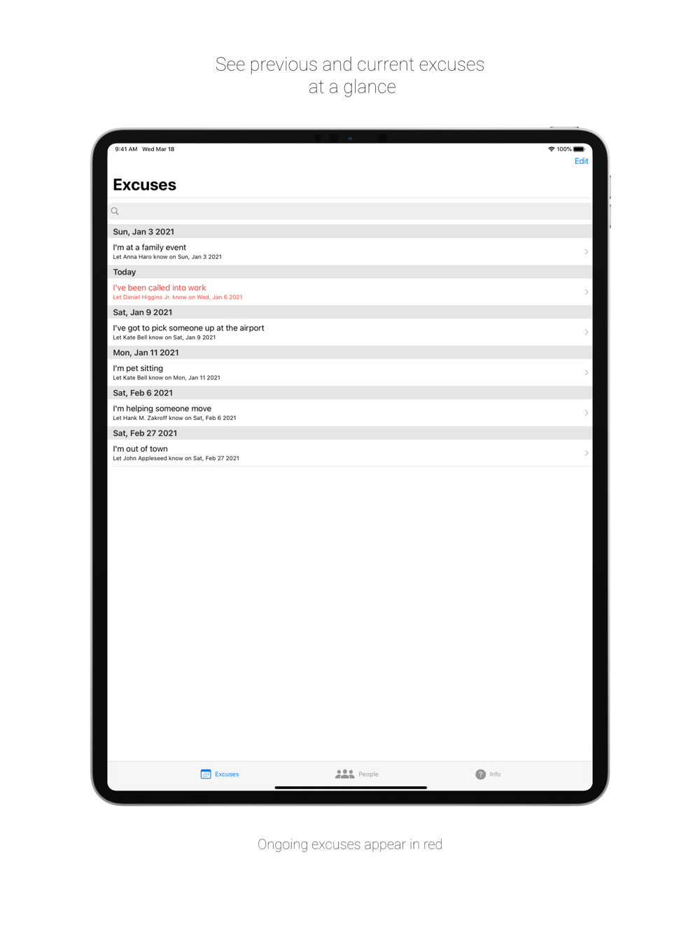 Create multiple people to manage excuses for:
