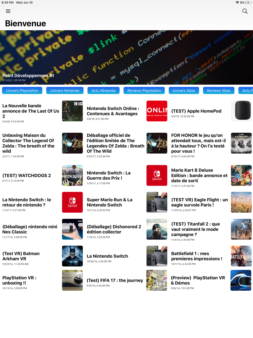 mais aussi des lives , report devaient , résumer des conférence Gaming et tech le tout dans une seul Application