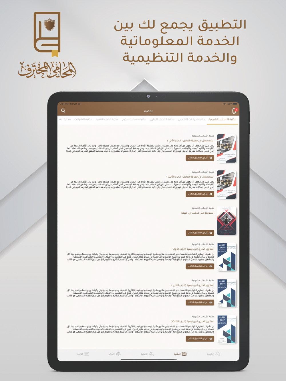 * التطبيق يجعل مكتبك في جوالك ويمكنك من الوصول لملفاتك وقضاياك من أي مكان وفي أي وقت.