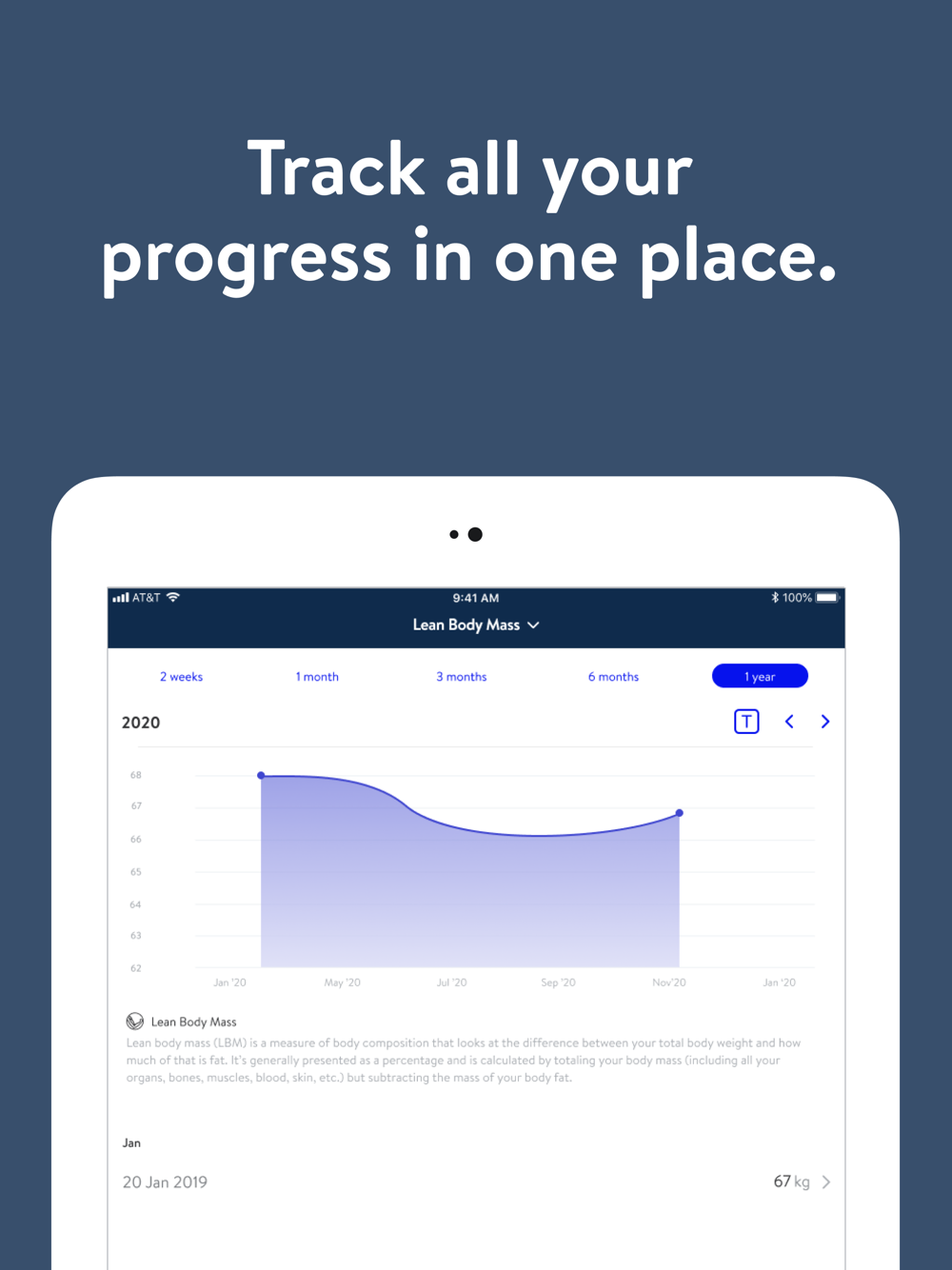 - Connect to wearable devices like Apple Watch (healthkit), Fitbit and Withings to sync body stats instantly
