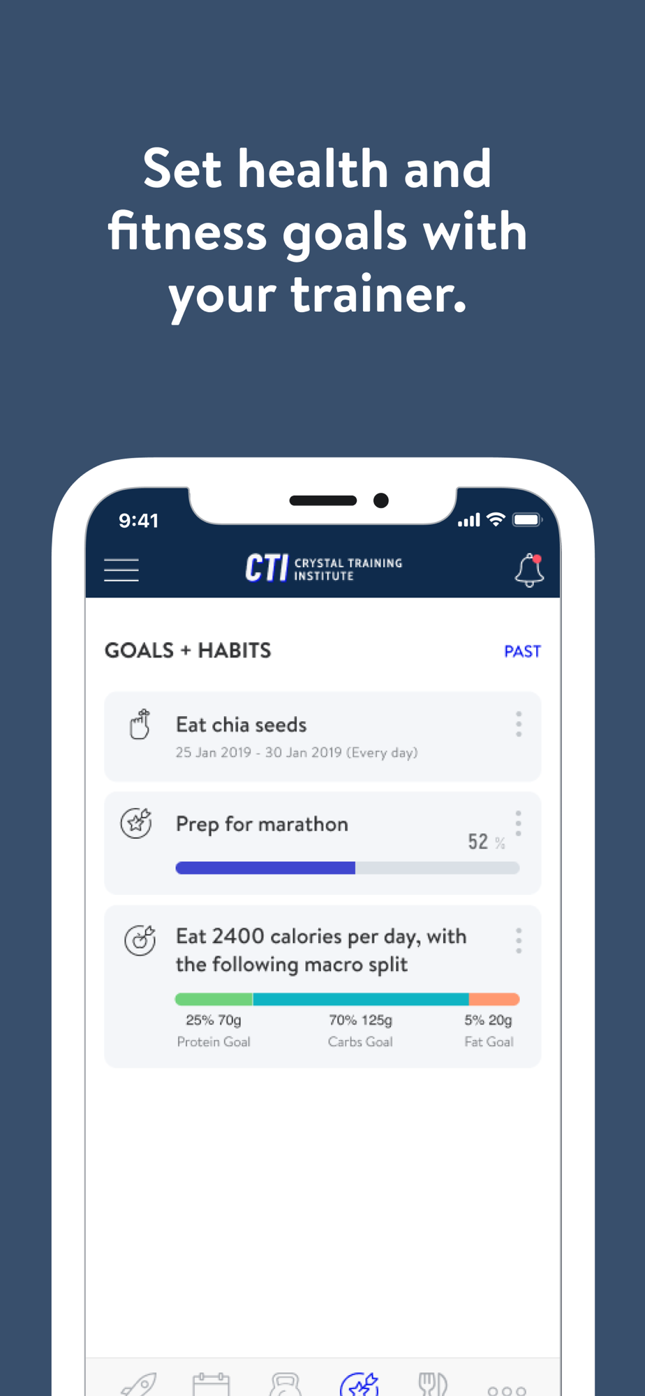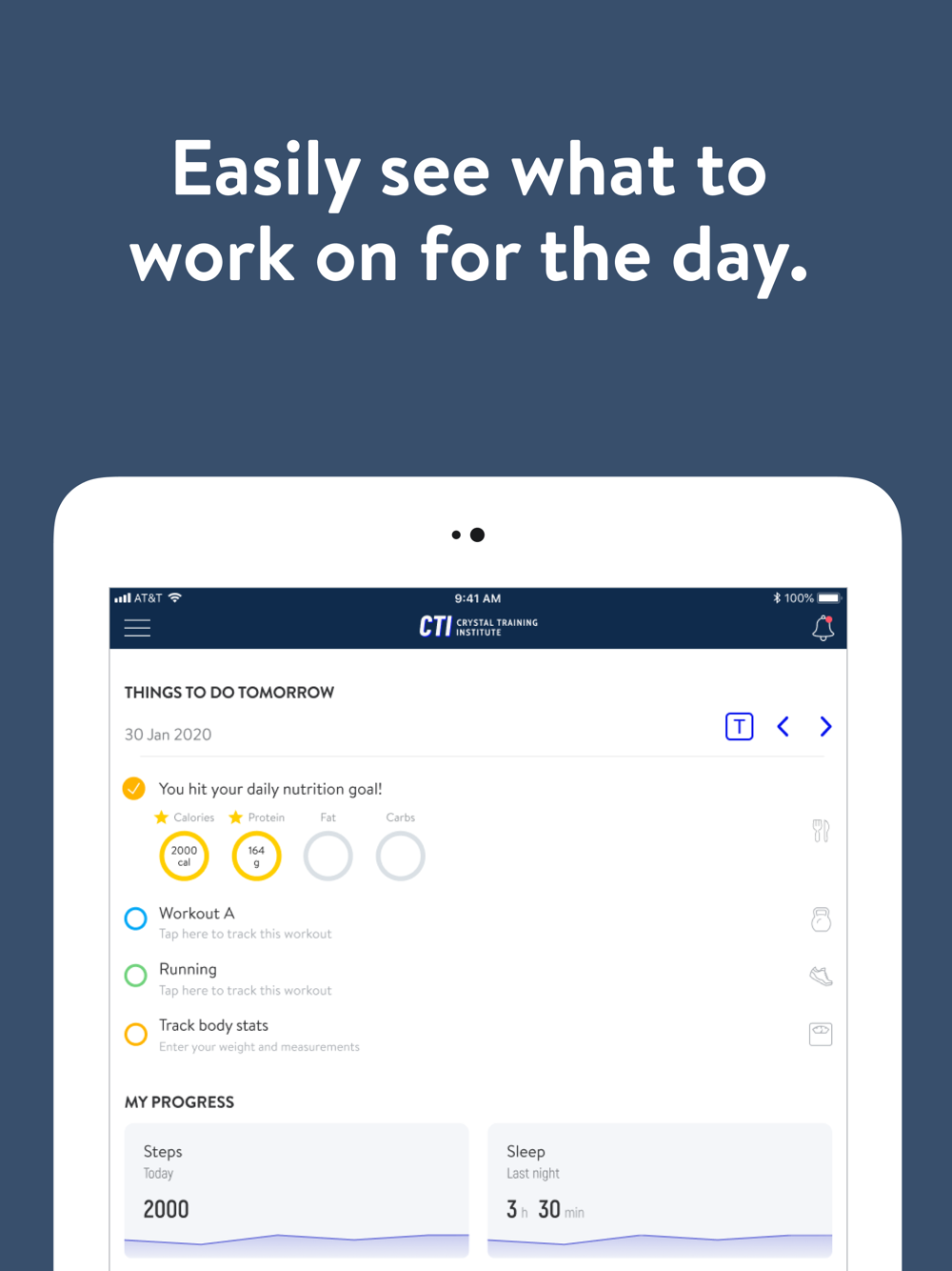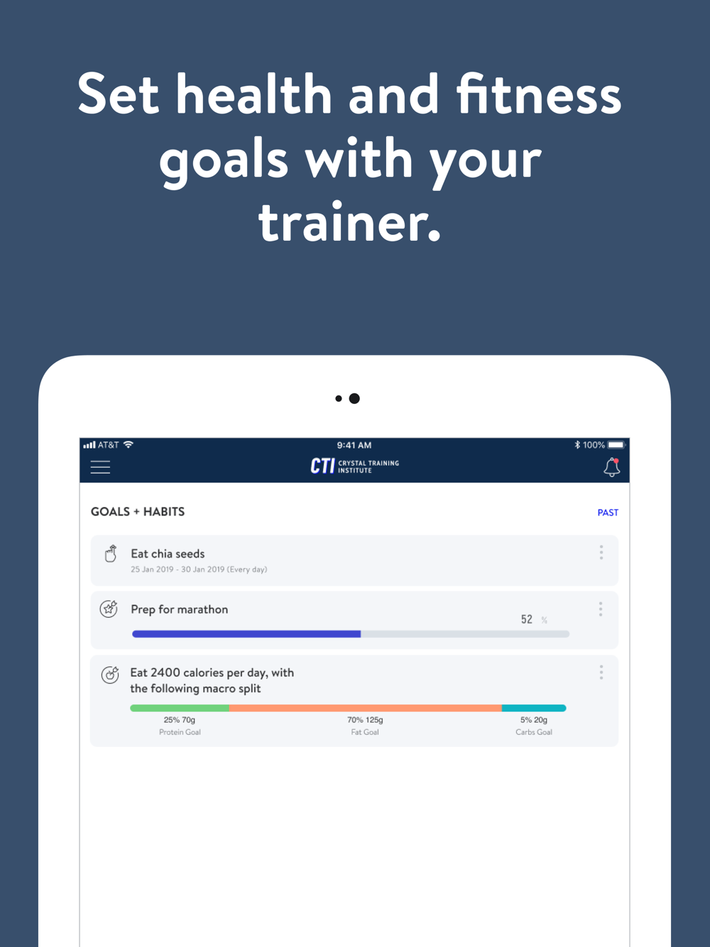 With the CTI Training App, you can start tracking your workouts and meals, measuring results, and achieving your fitness goals, all with the help of your Train 4 Your Best personal trainer.