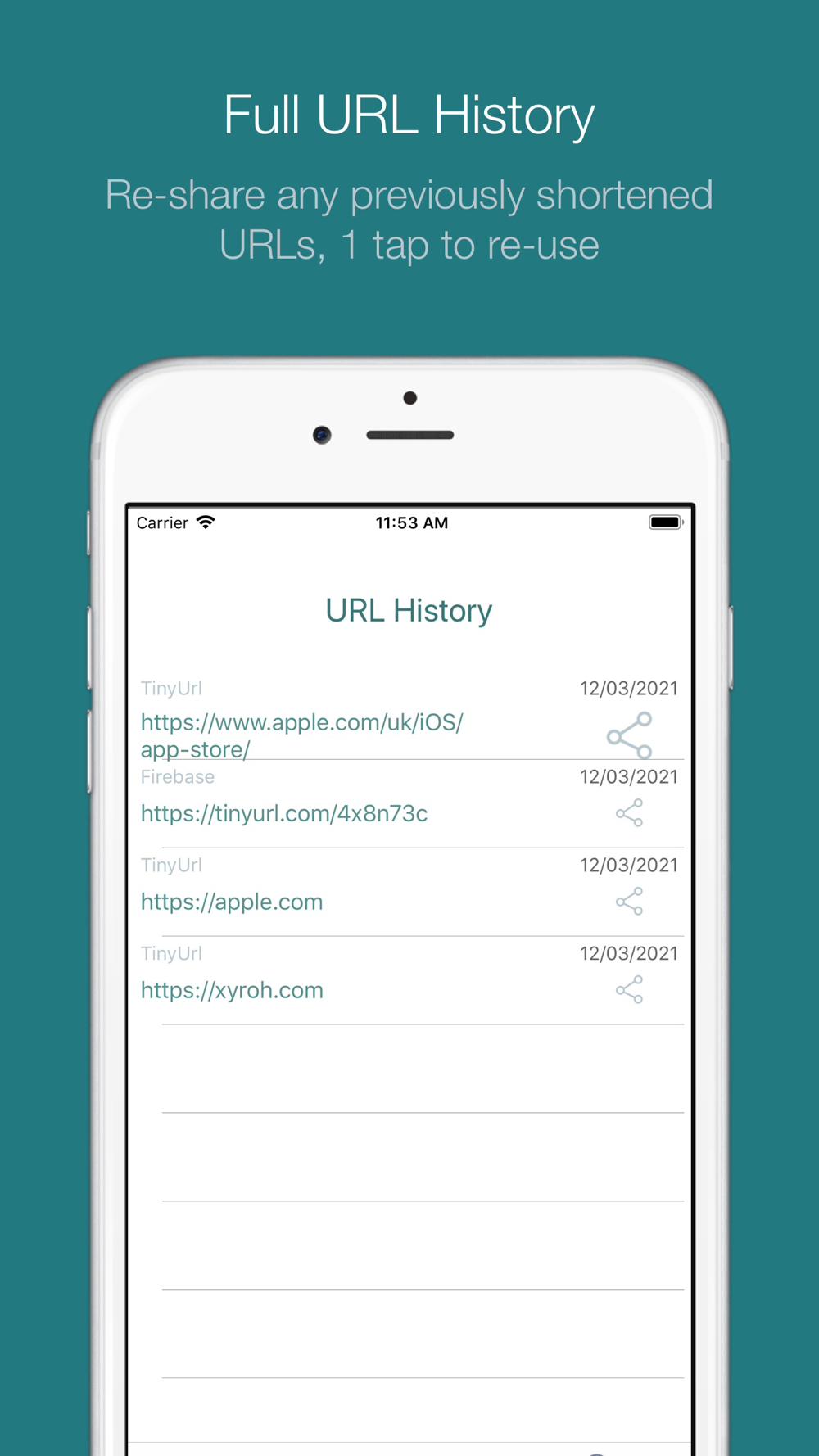 Whether you paste your URL directly into the app and share it out to your intended destination, or share a link straight to us from Safari or any other app that support URL share extensions. One click from then and your new, shortened URL, will be immediately be available to use on the clipboard.