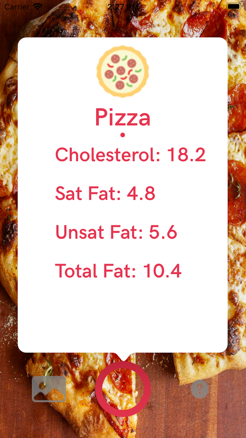 To view a food's nutritional information, simply take a picture of it and the app will display the following information: