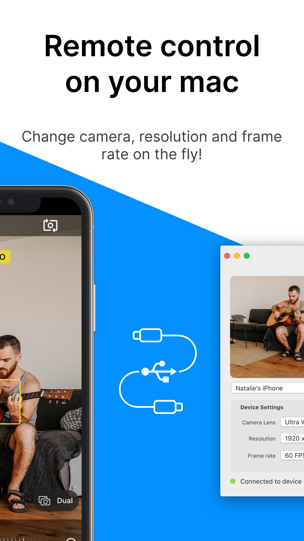 Use your iPhone or iPad as a USB Webcam for macOS.