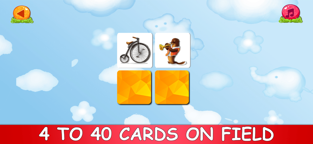 A substantial feature of the concentration game is the big number of objects to use for training – the game library has 400+ pictures that will leave no time to get bored. Cards for kids contain simple and bright images with eye-catching items.