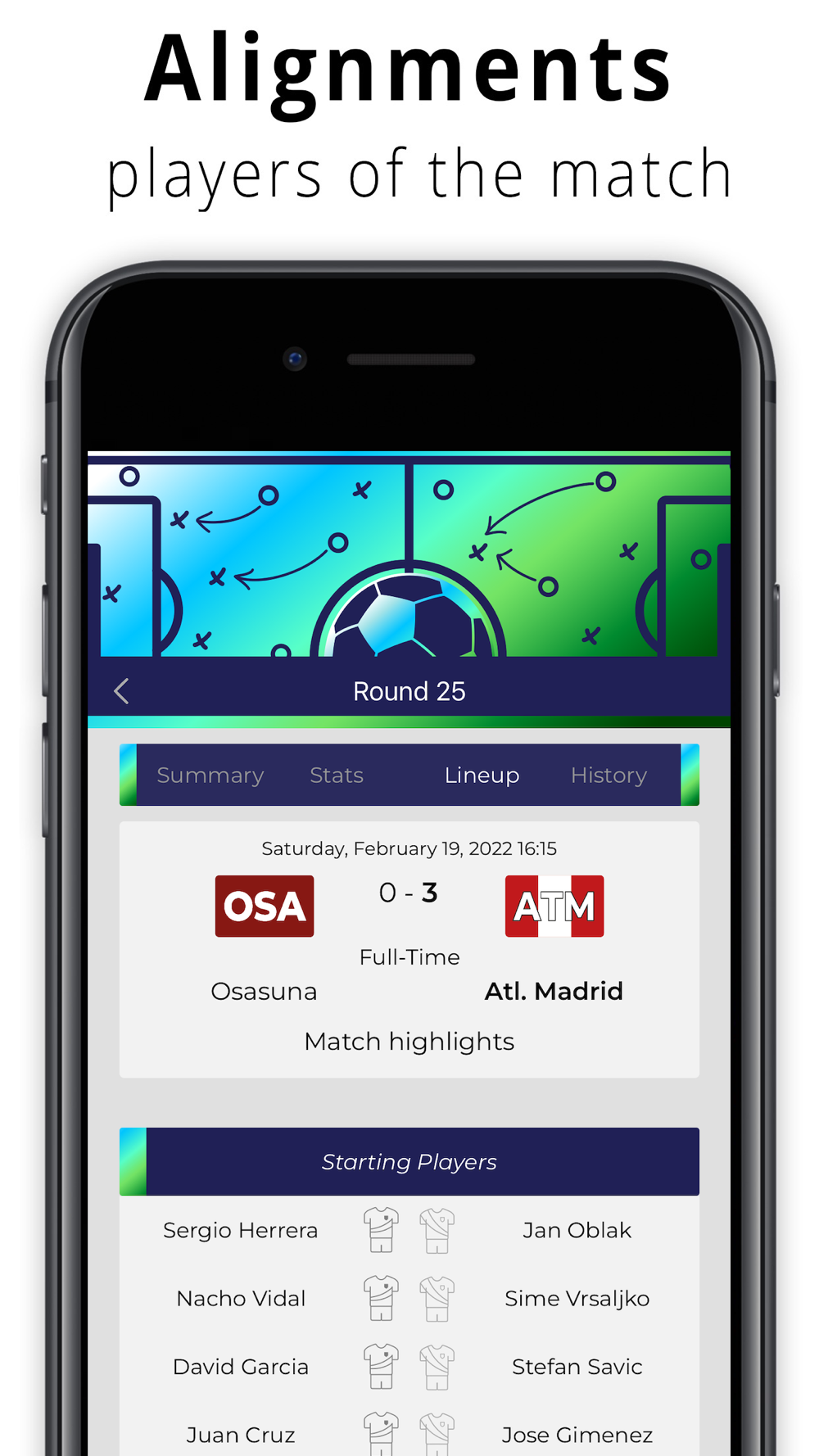 - Receive PUSH notifications on your mobile from your favorite teams. It will notify you of the start, rest and end of the match, as well as all the goals of the match.