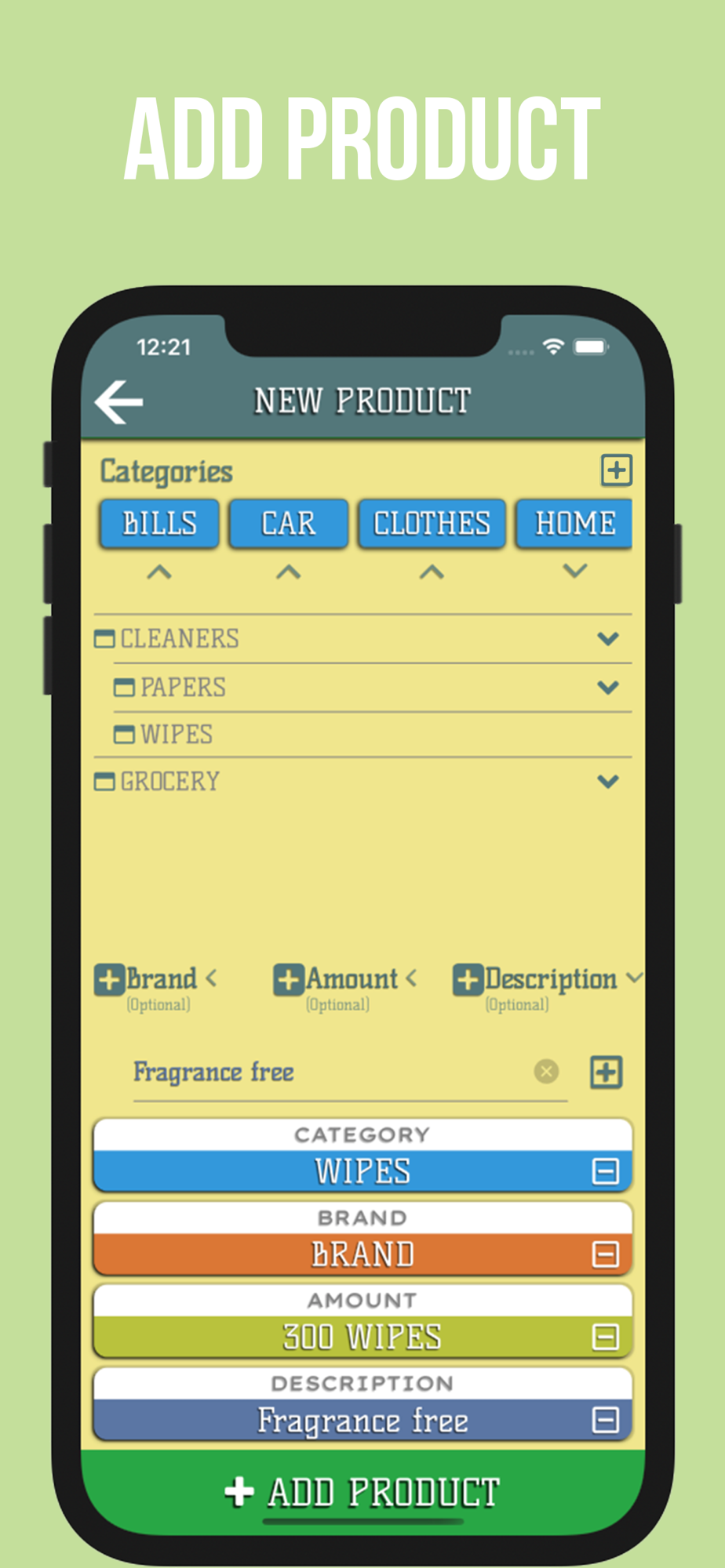 After creating your category hierarchy, all you have to do is add products; then you can track how much you spend on the products you add.