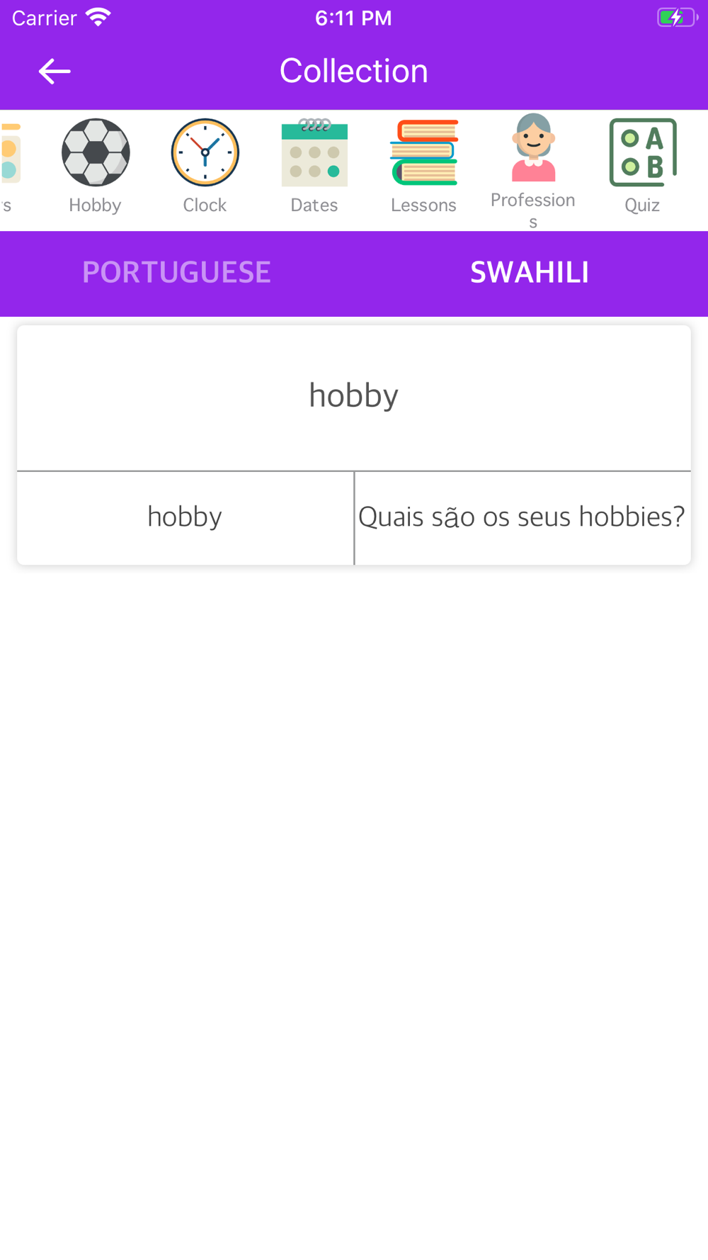 - Search option is working on both Portuguese - Swahili and Swahili - Portuguese directions.