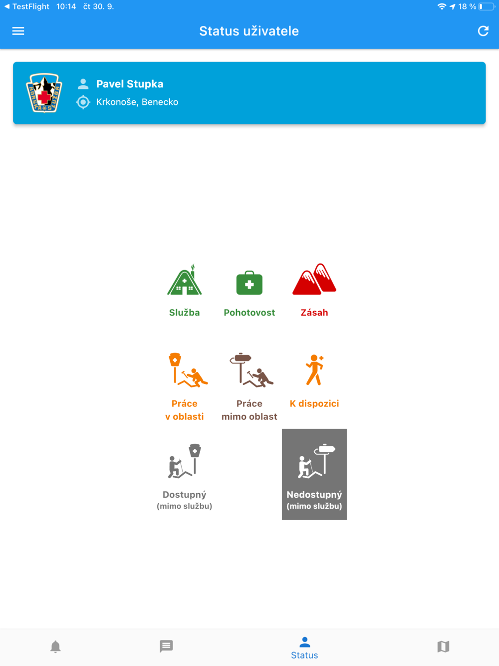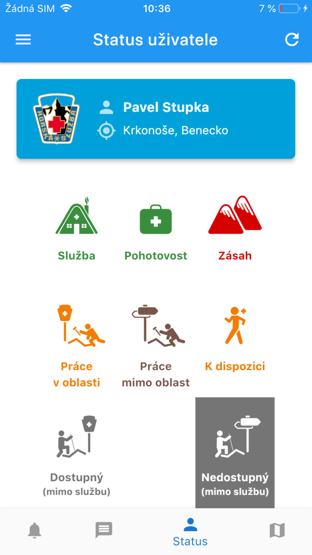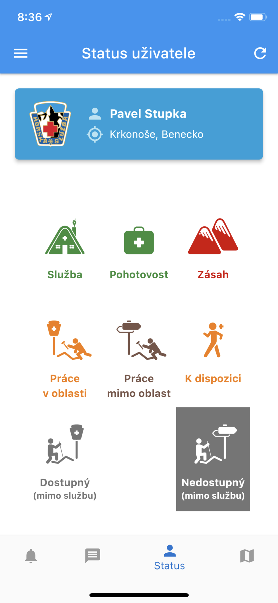 Rozšíření o nové funkce: statusování záchranářů vůči výzvě, sdílení polohy, změna statusů služby - nový status K dispozici. Osouhlasení ochrany osobních údajů při přihlášení. Úprava barevného značení ikon v mapě u stanic, výzev a záchranářů dle nového schématu. Úprava adres REST API pro komunikaci s nově odděleným informačním systémem.