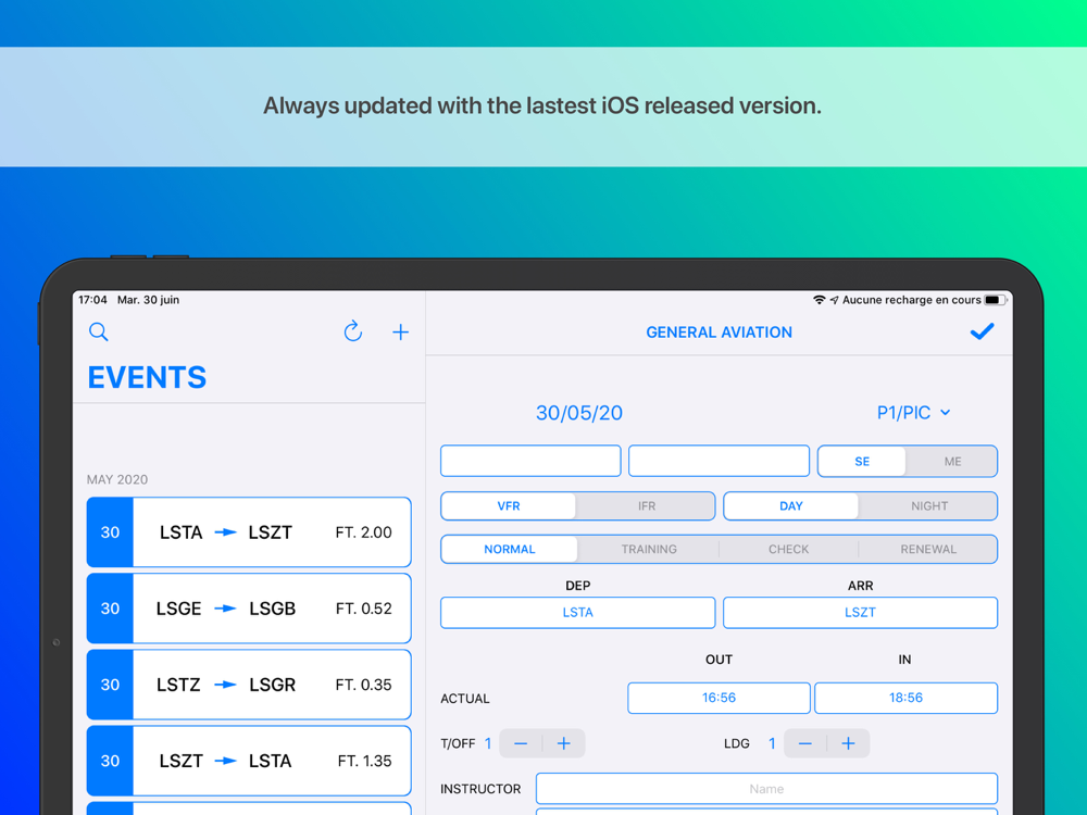 Log each of your flights in a very easy manner: wether it's a training flight or a regular flight.
