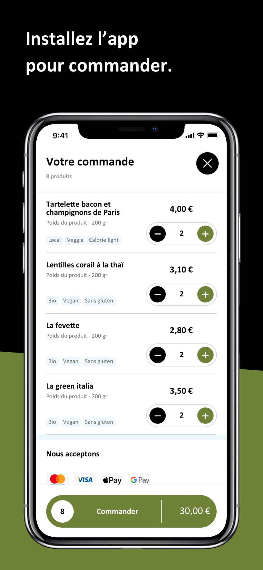 L'application vous permet de commander en toute sécurité votre déjeuner et de le retirer en point de retrait sans frais de livraison.
