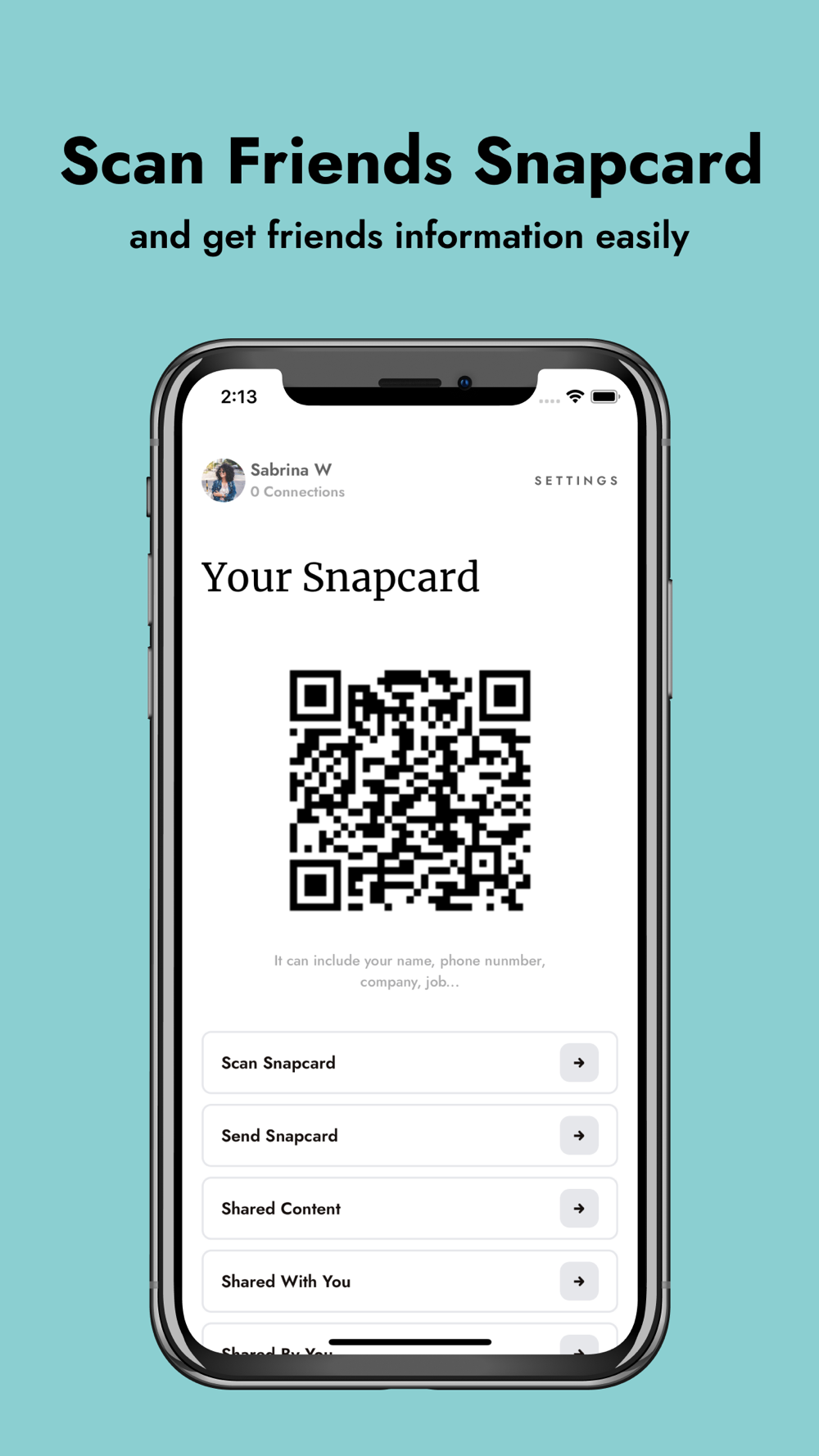 • Scanning Snapcard's is easy! Tap to scan a Snapcard, and connect with your friend without spending time!