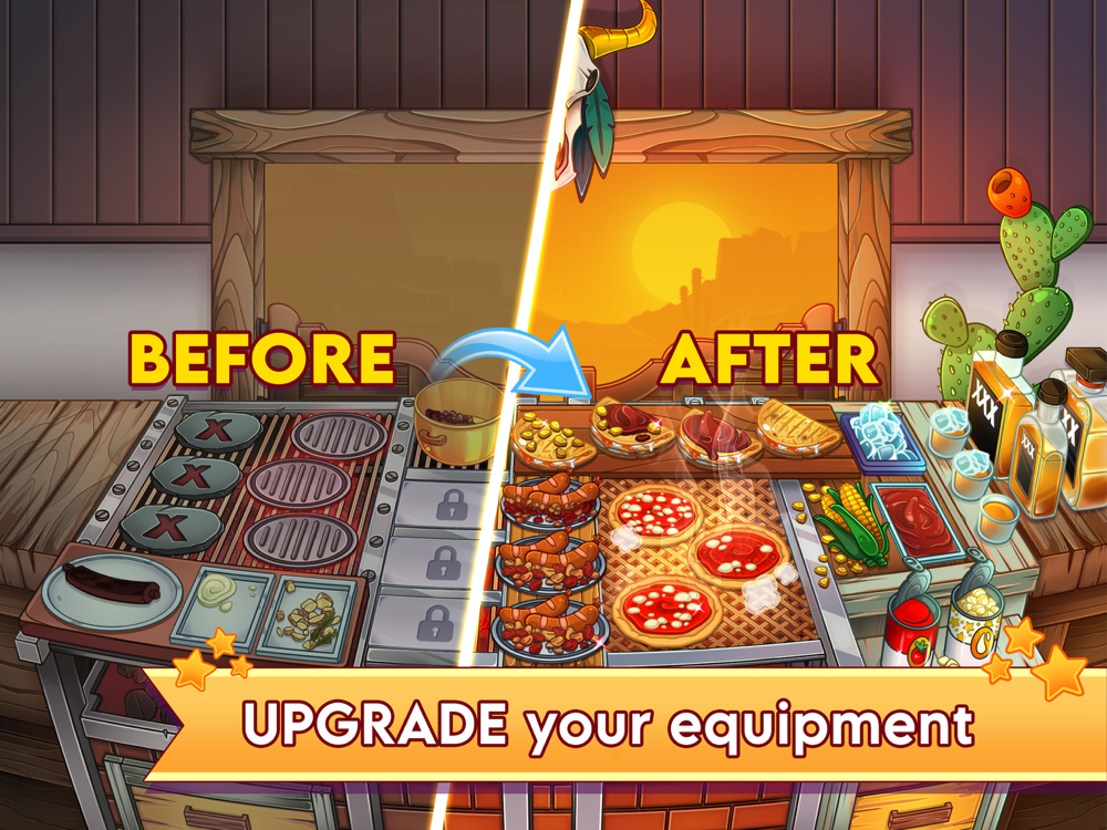 Bake pizza in the City, grill sausage and skewers in a Medieval village, serve fish and octopus in the Pirate Ship! Tap as fast as you can to serve customers with different needs and tastes.