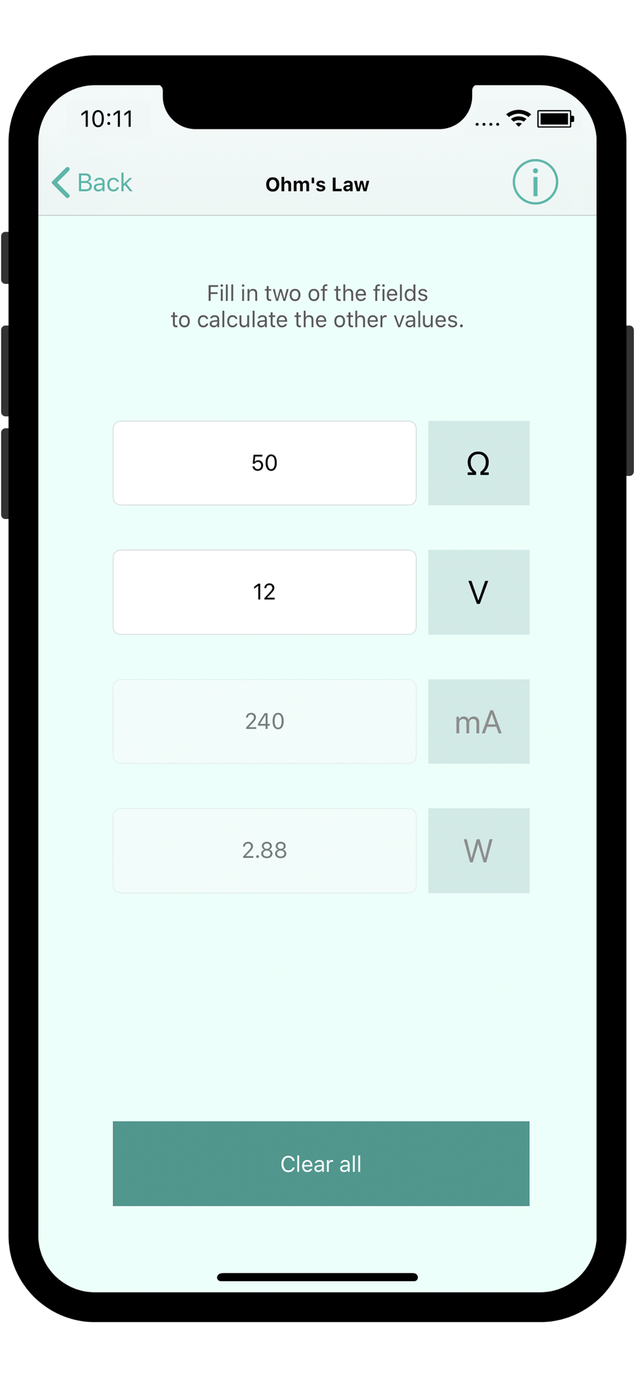 - Ohm's law - calculates Resistance, Voltage, Current and Power by entering two of the known values.