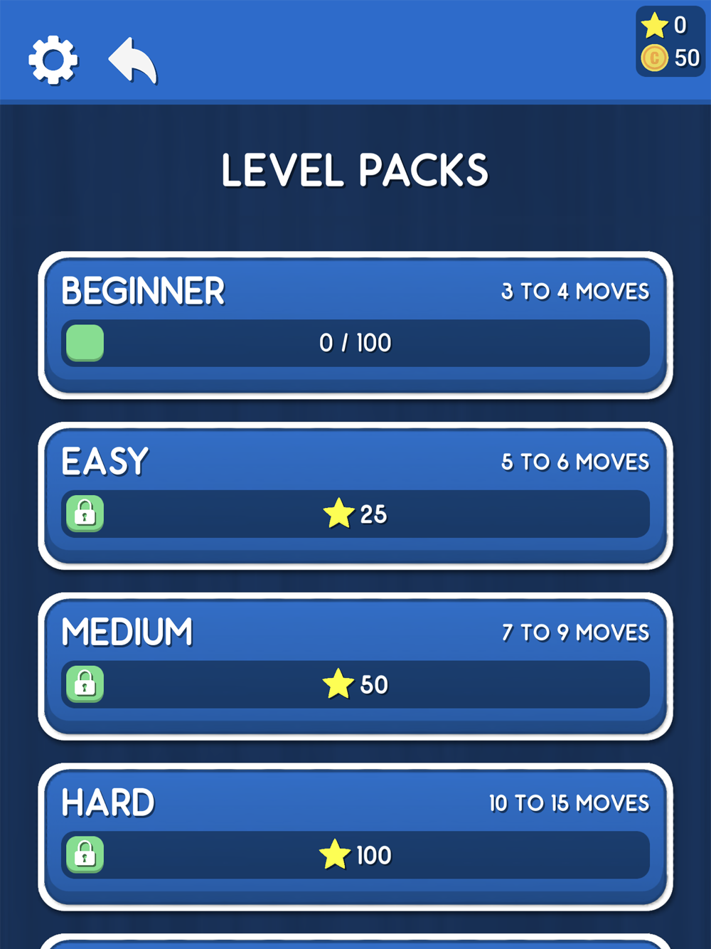 ● Each completed level earns a star, collected stars can be used to unlock level packs.