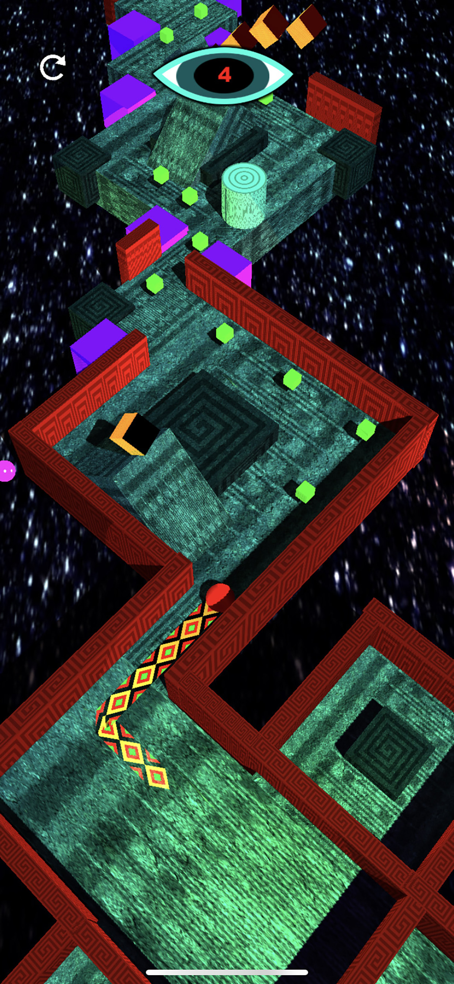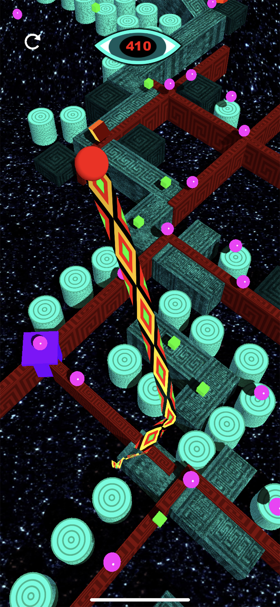 Follow the path by tapping the screen to zig zag right or left, be careful with the cushions that may pop you off the path and even send you off flying in the air, you´ll have to get back on track to reach the points needed to finish the track.
