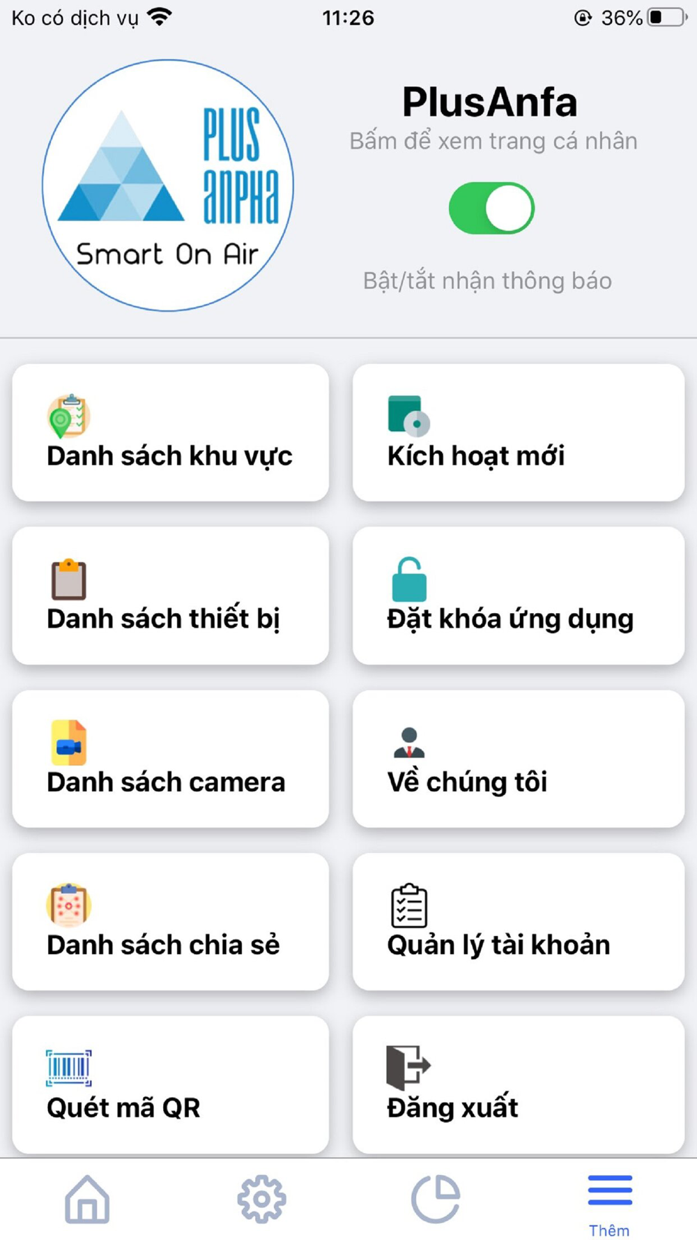 Ứng dụng PlusAnfa trên điện thoại thông minh
