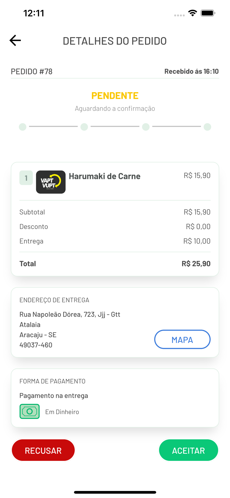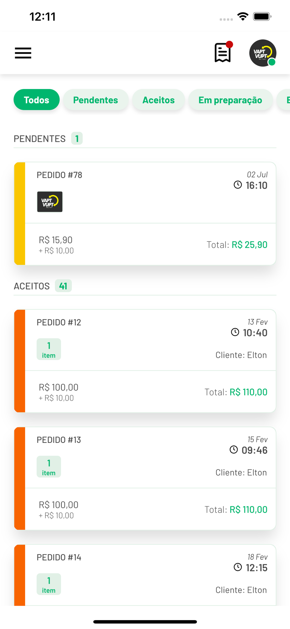 Gerencie todos os pedidos do seu estabelecimento feito no verdinho em nosso App Parceiro. Nele você é notificado sempre que chegar um pedido novo, consegue ver todos os detalhes, aceitar, ou recusar um pedido.