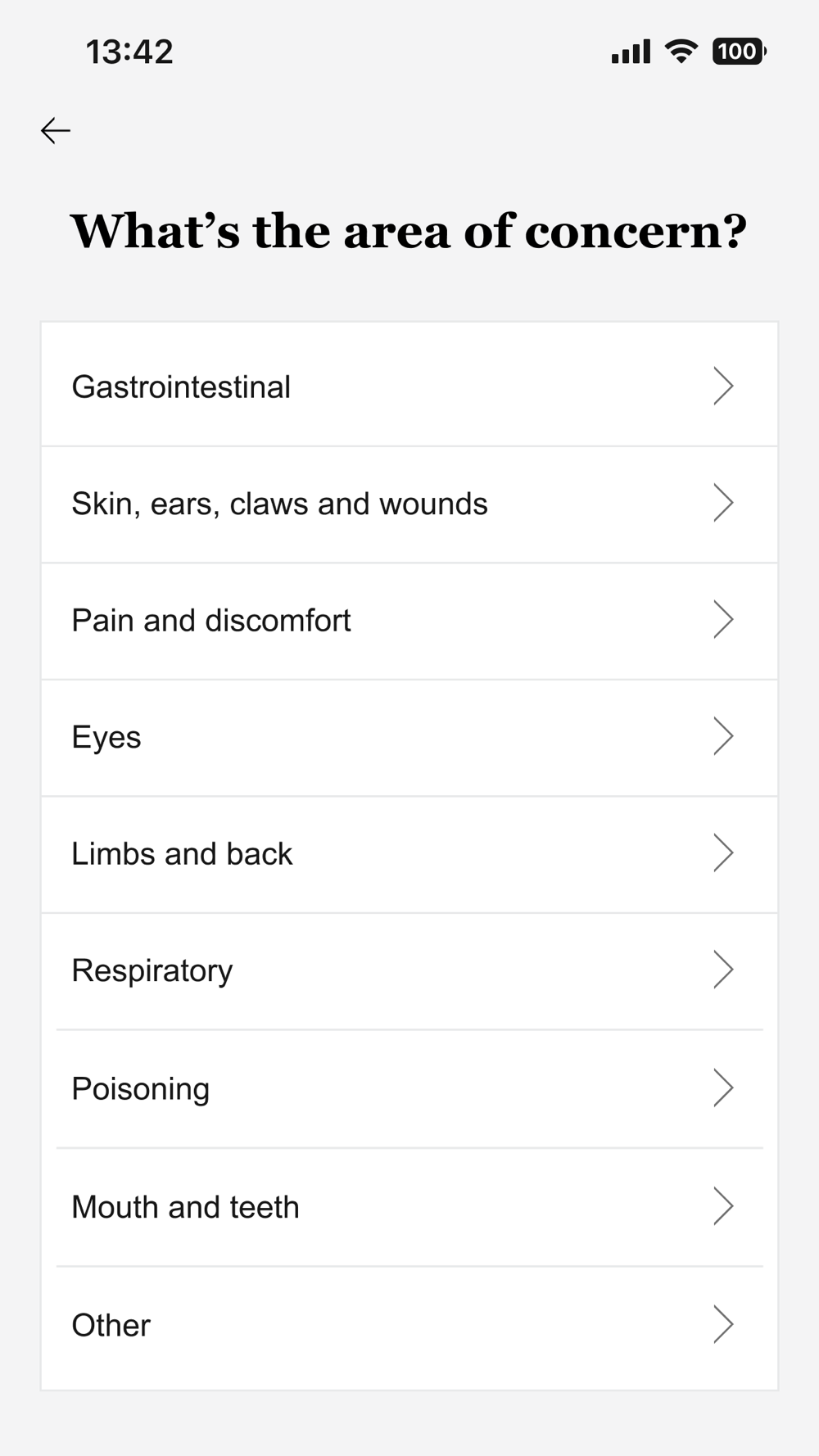 - Ask about any pet topic, whether it’s a routine health question or a potential urgent care need