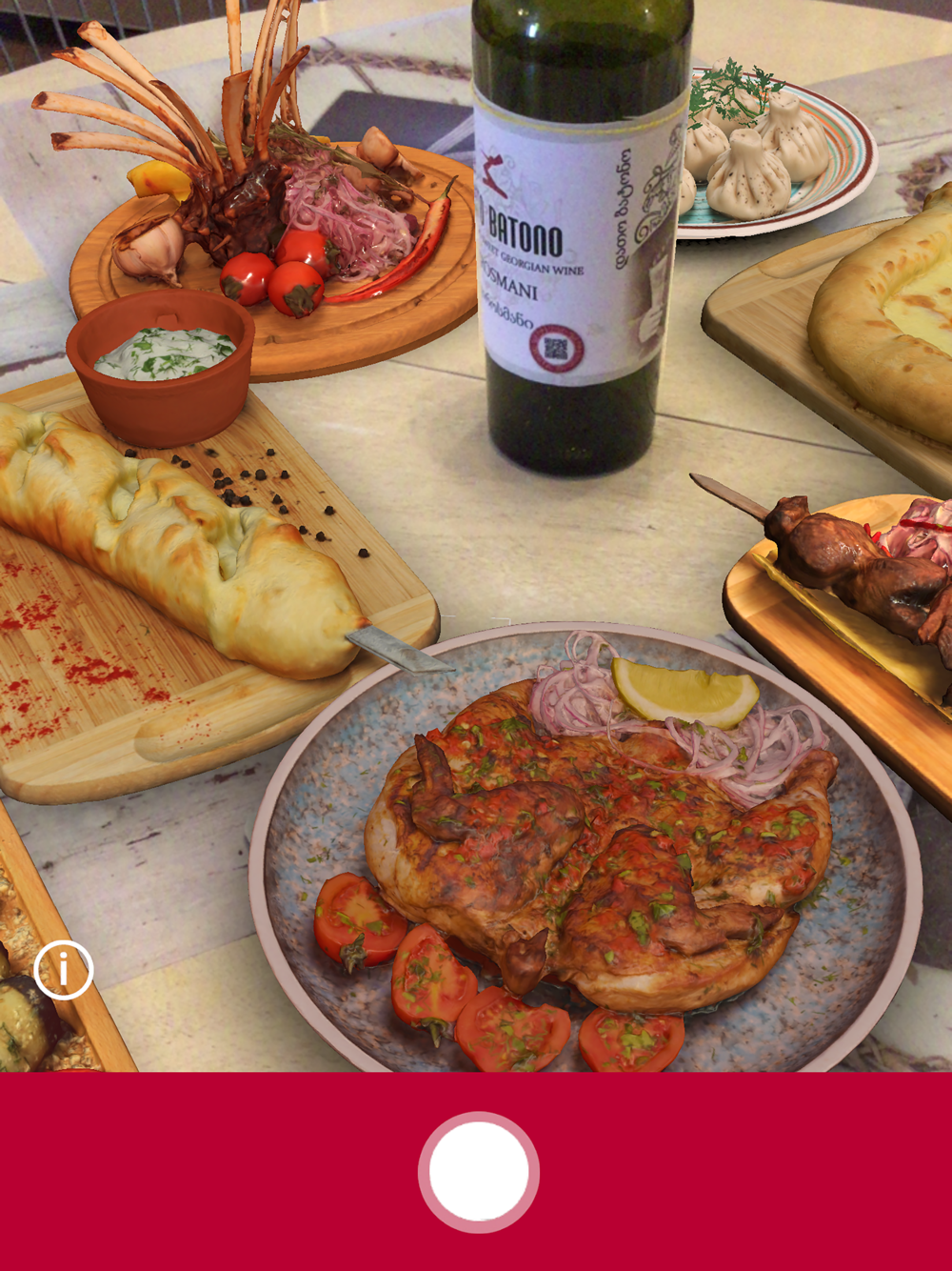 Discover real Georgian wine and augmented reality in one glass. We will turn your table into an unforgettable gastronomic tour of Georgia with the help of fantastic magic, you will witness a traditional Caucasian feast of delicious dishes that instantly cause appetite. We will give new impressions, make life brighter, and charge you and your dear guests with a positive.