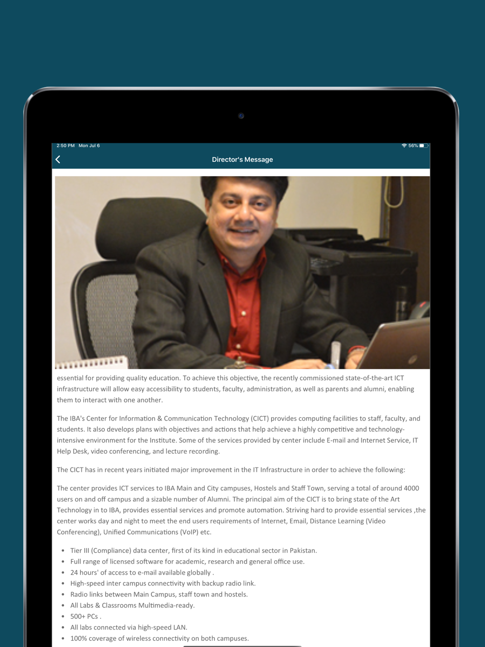 IBA CICT Mobile Application will let you get Notifications and Alerts about happenings in IBA CICT and you can view :