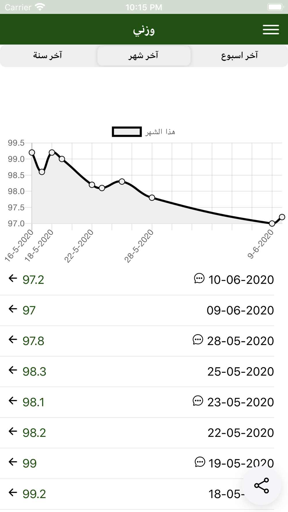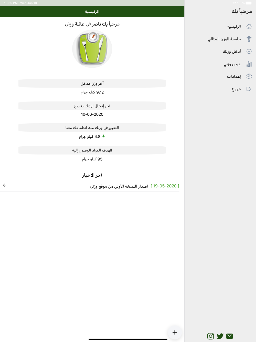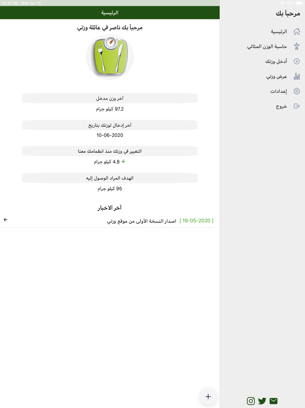 يوفر لك تطبيق وزني الأدوات المناسبة لمتابعة وزنك ، عند قيامك بإدخال وزنك بشكل دوري في تطبيق وزني يمكنك مراقبة وزنك بكل دقة وكذلك مشاهدة الرسم البياني لإتجاه وزنك ،وكذلك يمكنك مشاركة ارقامك مع طبيبك المختص او أخصائي التغذية الخاص بك ليقوم بمتابعة نظامك الغذائي.