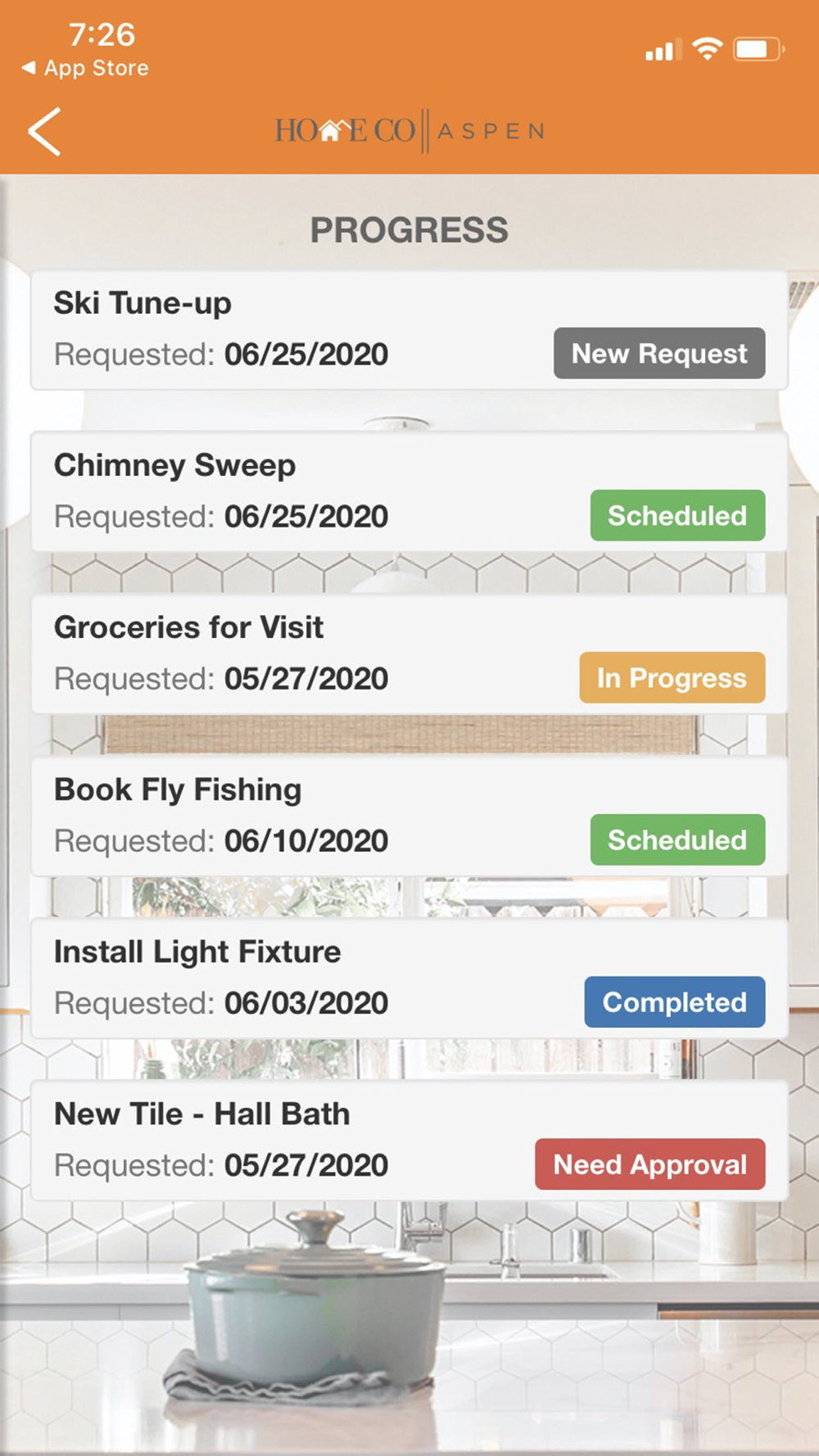 From the mobile app, Aspen homeowners can make a service request, check status of home projects, notify us of arrival dates, view/pay bills, and manage your property from the convenience of your phone.