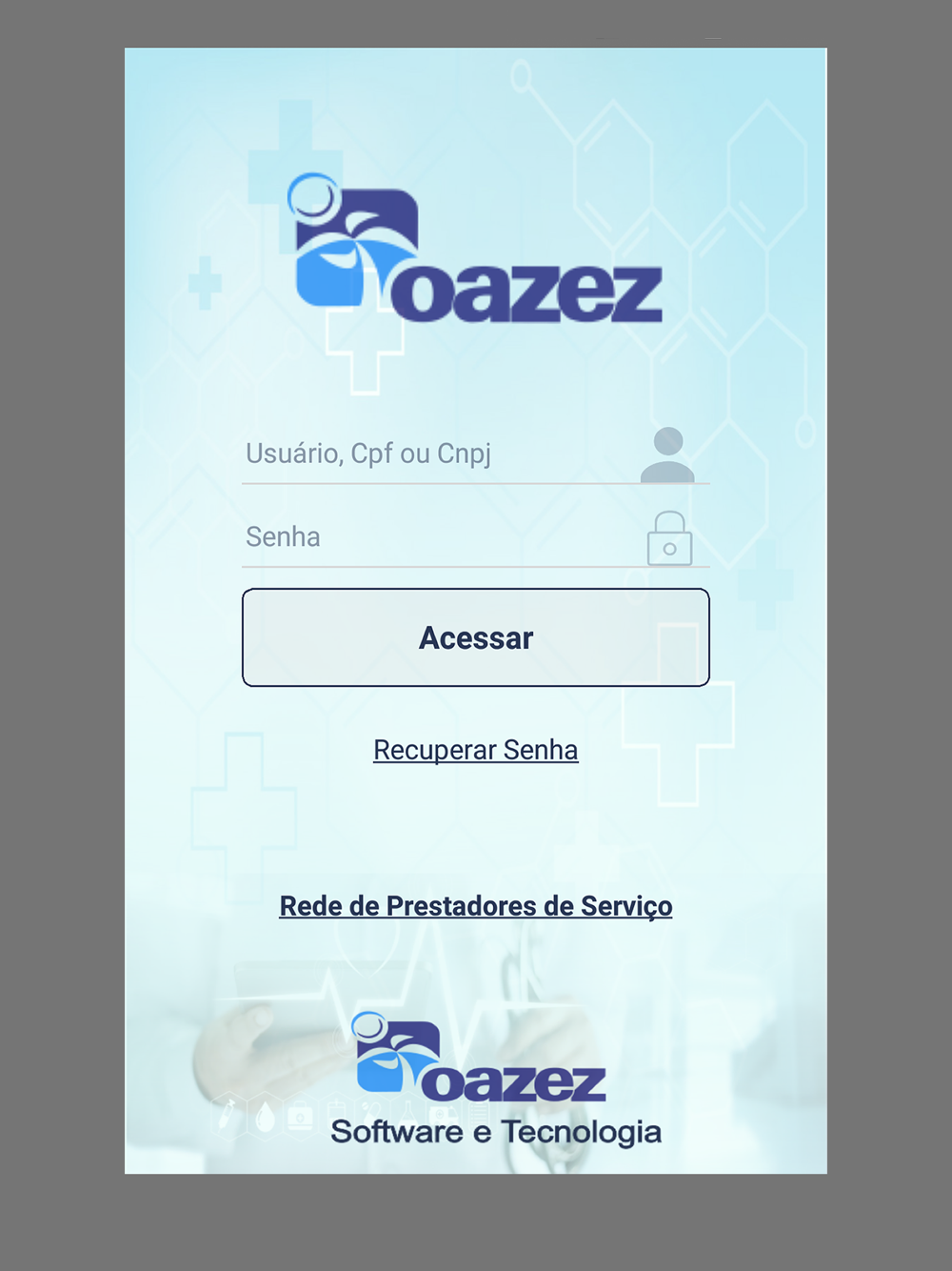 O aplicativo disponibiliza acesso à rede credenciada da operadora de saúde sem necessidade de login.