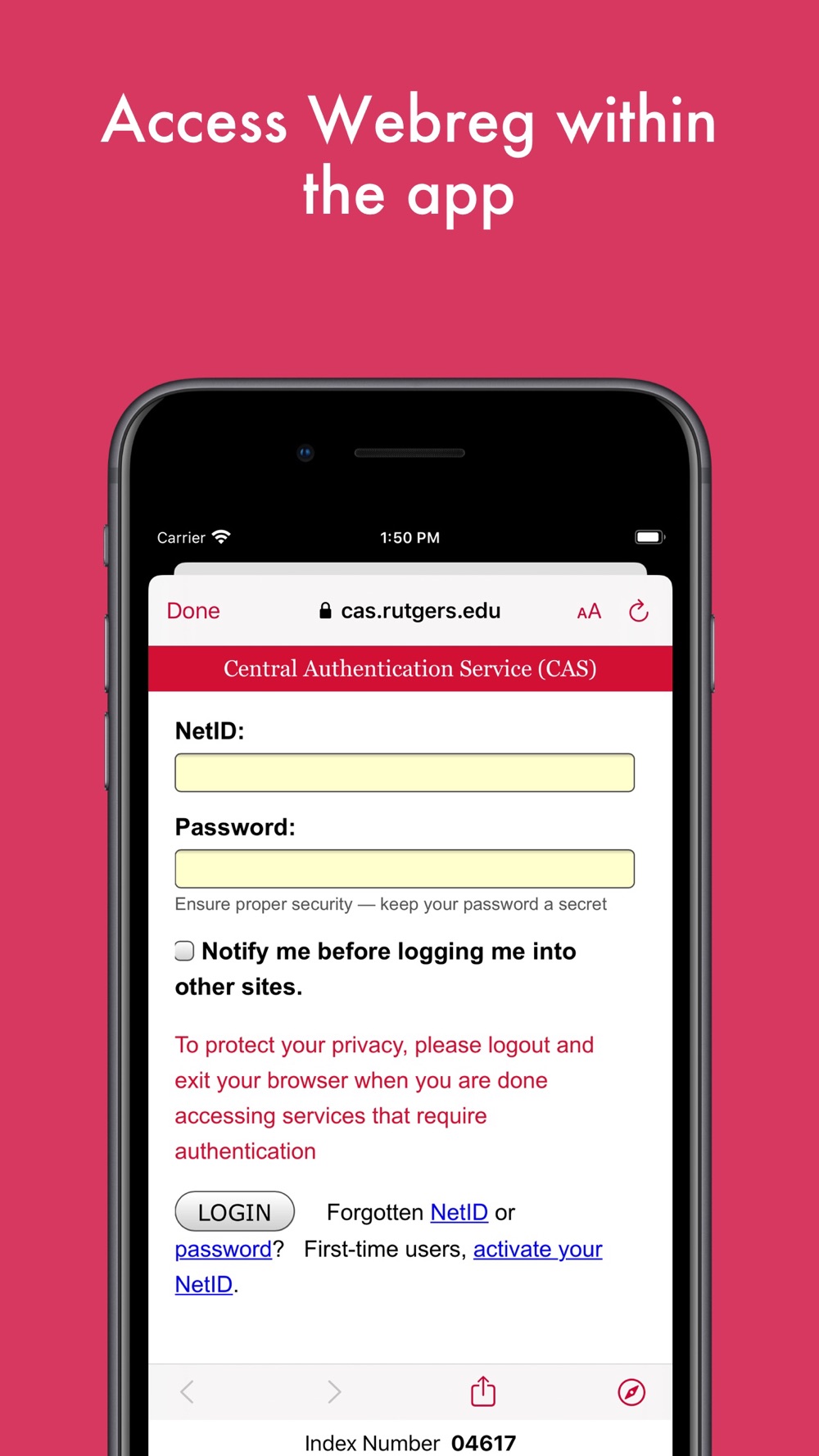 Unlike other course trackers, tapping on our push notification will open up WebReg for you without needing you to enter the index number, saving you time to get to your selected course first!