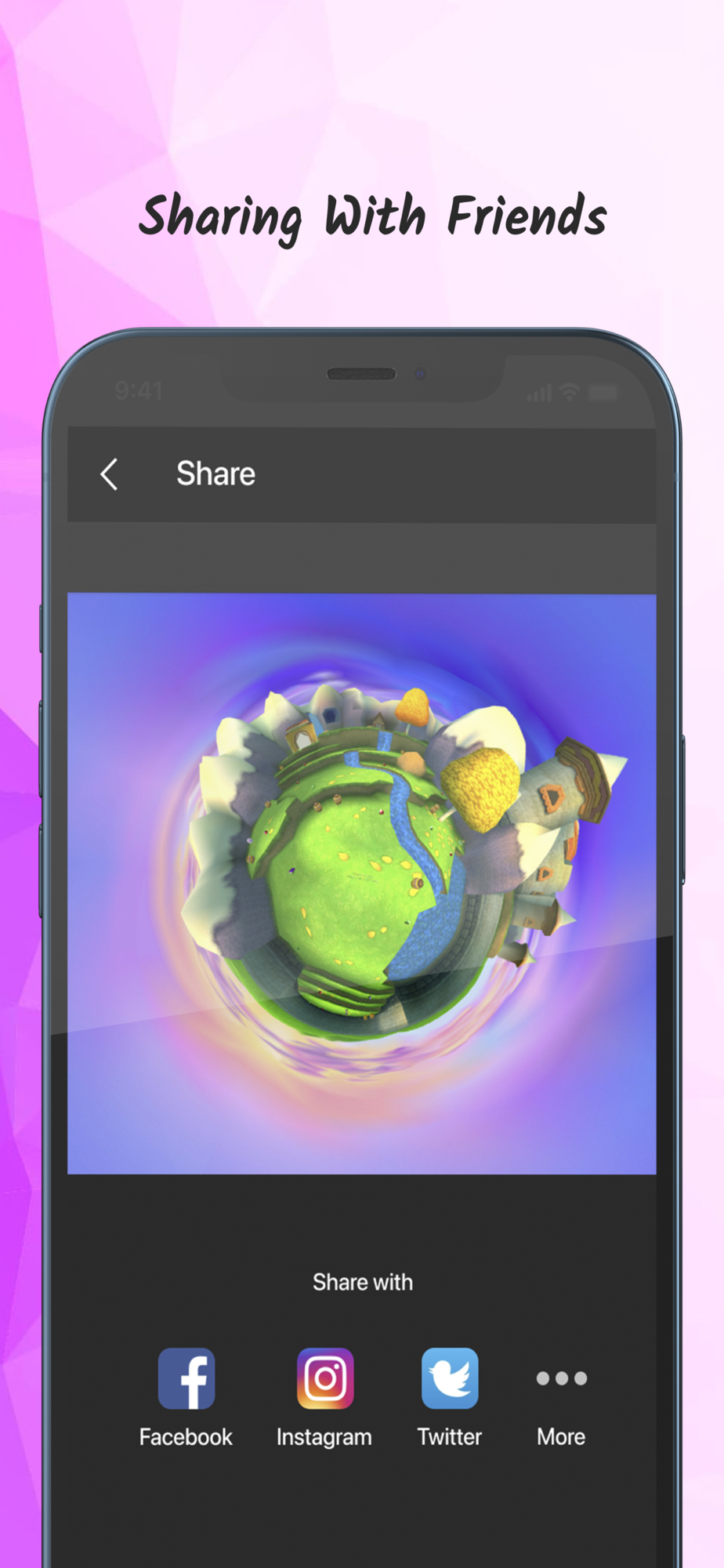 - Share your planet to everyone in your social like Facebook, Instagram, Twitter, Whatapps, via email or SMS or save to your camera roll.