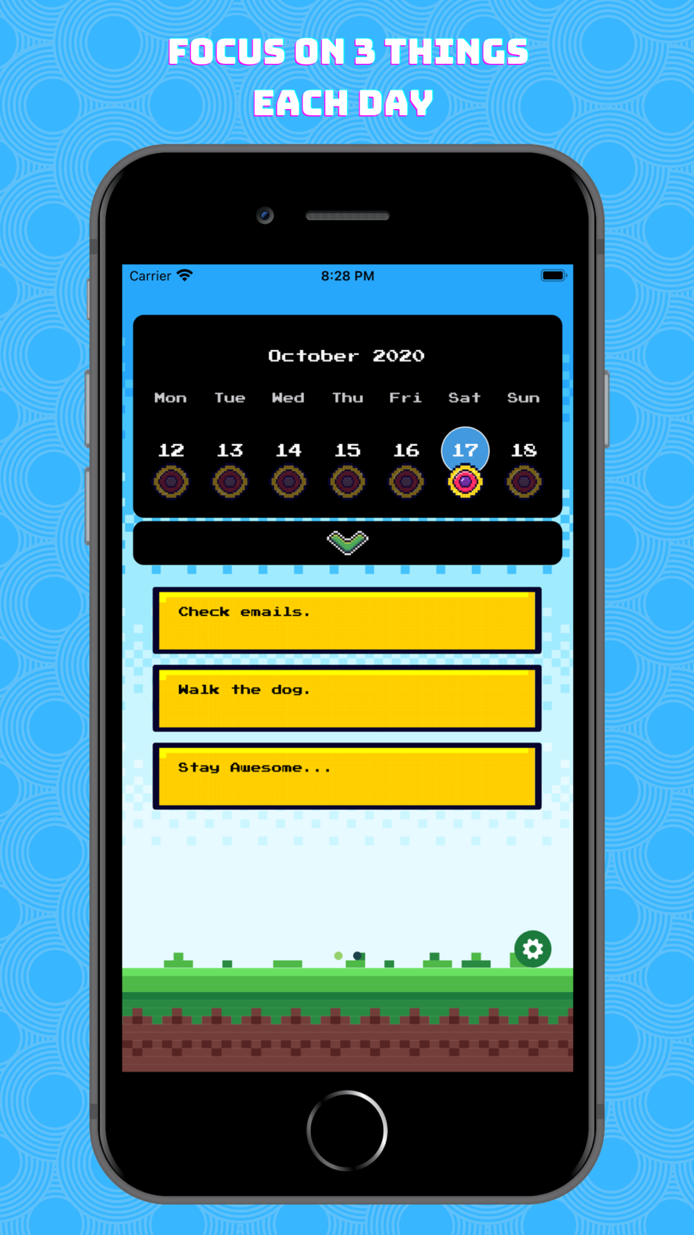 3hits is an easy-to-use daily planner app that you can complete three important things to do each day. Join the 8-bit world of 3hits and work on your top 3 things to do!