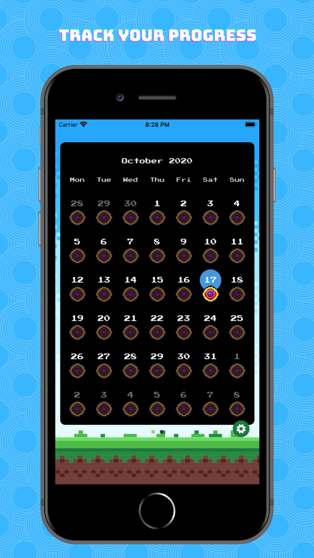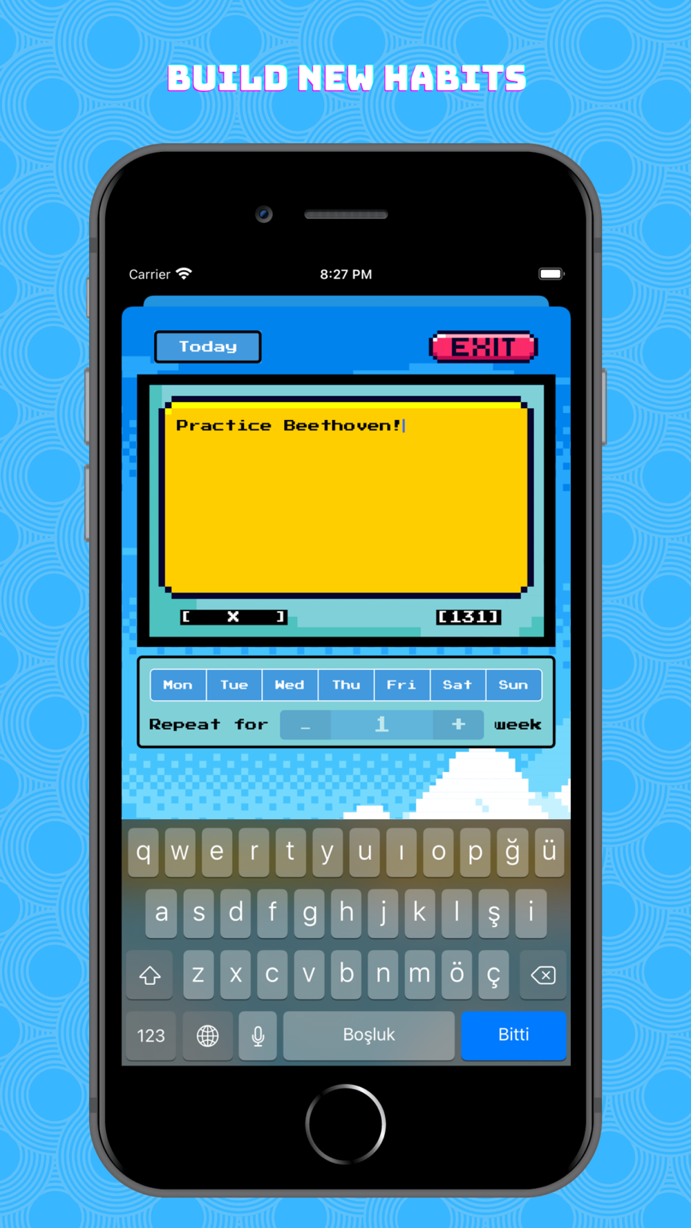 - Stay on act with motivational texts and target based 8-bit characters.