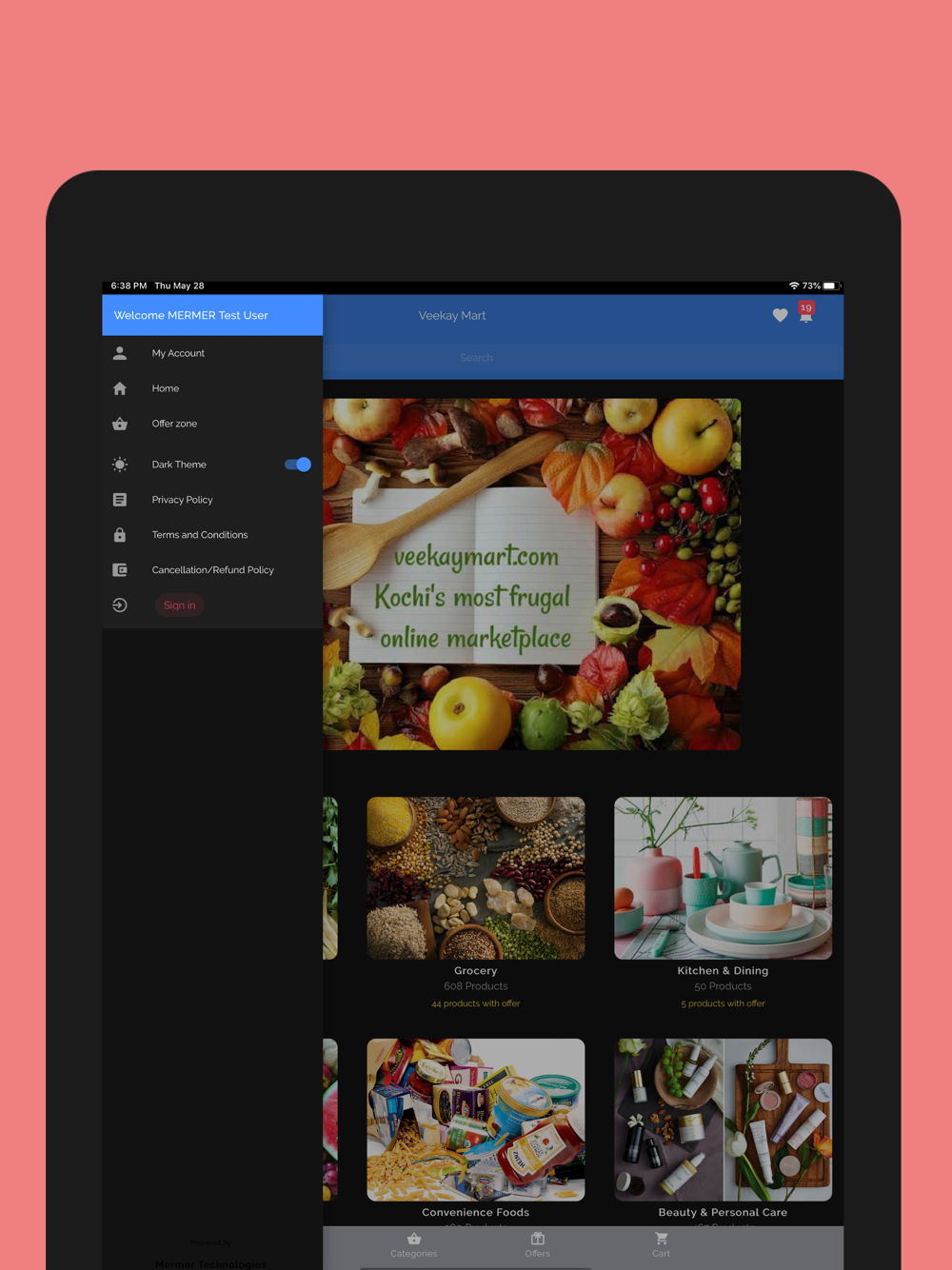 VeeKay Mart online purchase functionalities and features. Users can view products virtually and order them seamlessly using well arranged categories and navigation features. Convenient purchase options, cheapest prices and amazing offers make VeeKay Mart the most frugal online marketplace available in Cochin, Kerala.