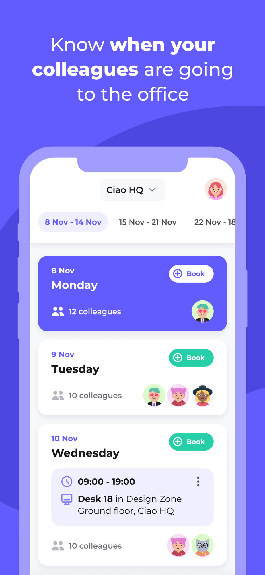 Ciao is an application that allows you to simplify your office workday by booking your workstation.