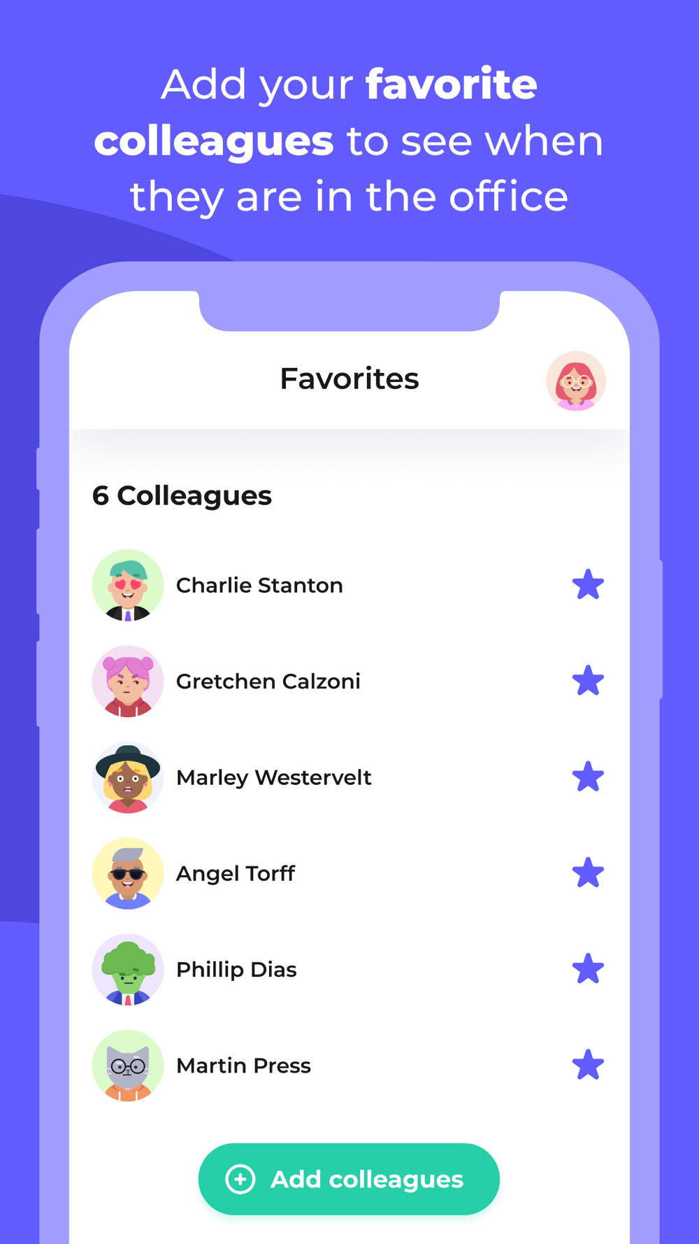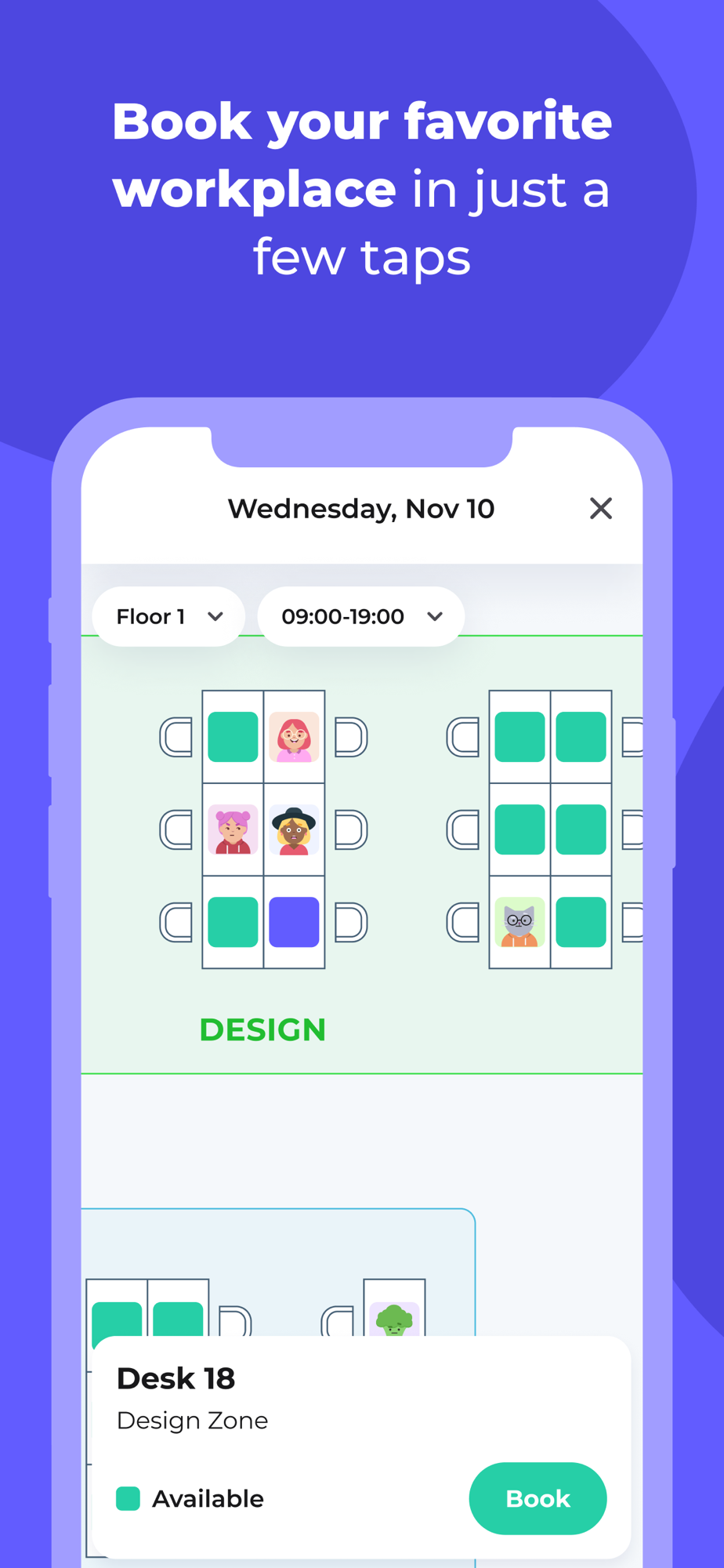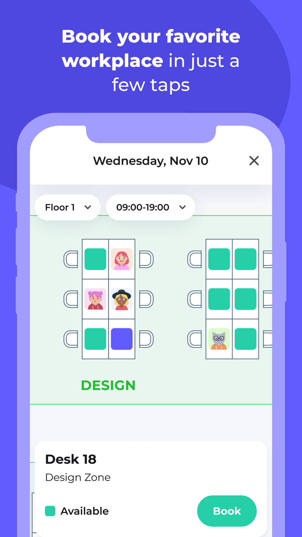 - See which other colleagues will be present at the office at the same time and which seat they will occupy