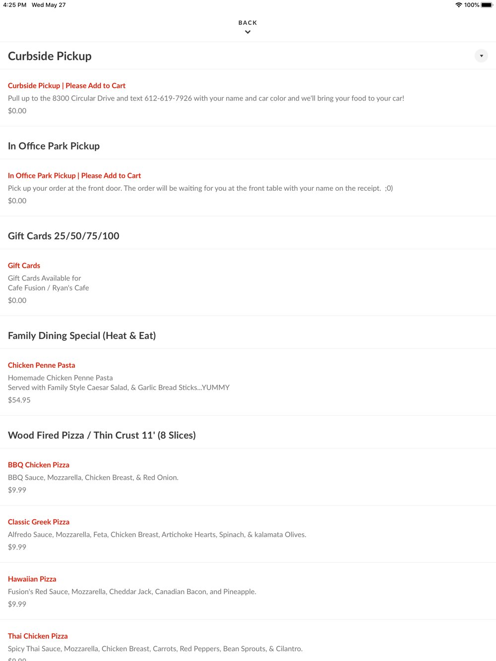 With the Cafe Fusion mobile app, ordering food has never been easier. Whether you're looking for a quick snack or a full meal, we've got you covered. Just browse our easy-to-use menu, customize it how you'd like, place your order using our secure payment system, and sit back! A push notification will alert you when your order will be ready.