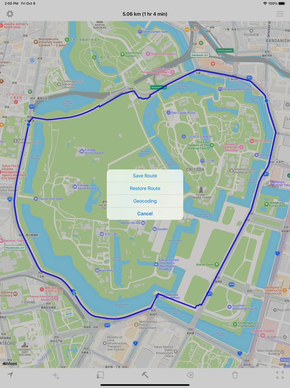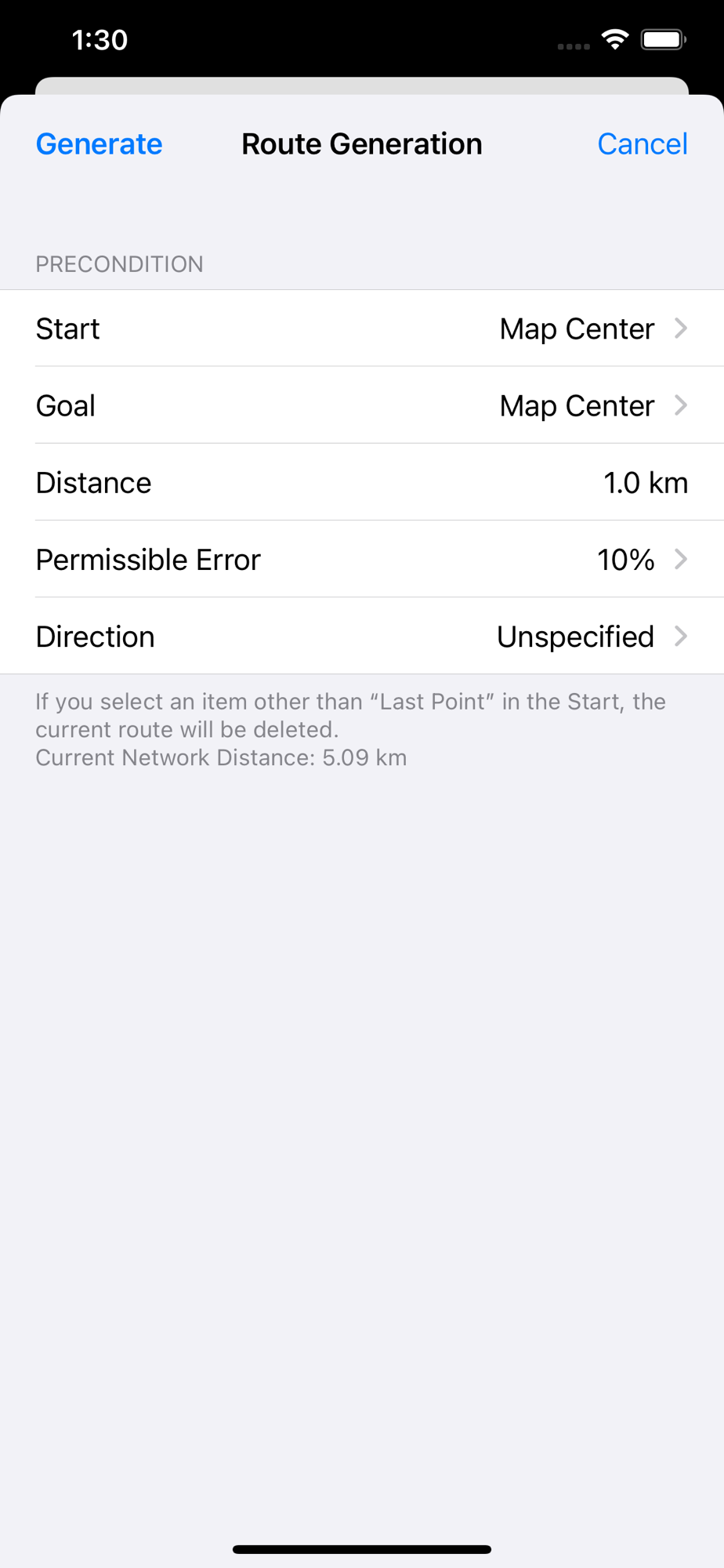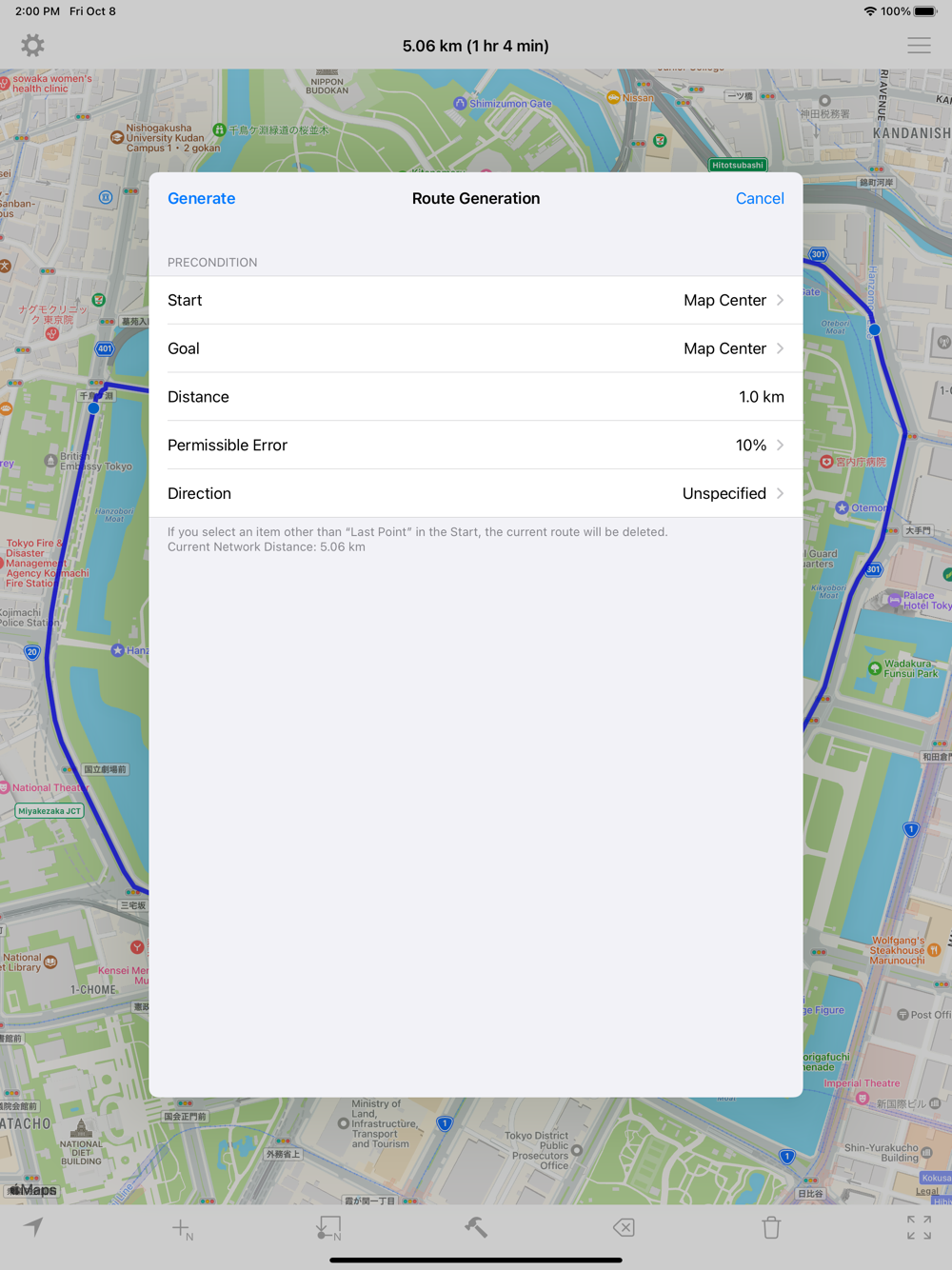 This app will automatically generate a walking route for the specified distance, making it suitable for individuals seeking new and varied walking paths. Additionally, you can measure both the network route distance and straight-line distance on the map.